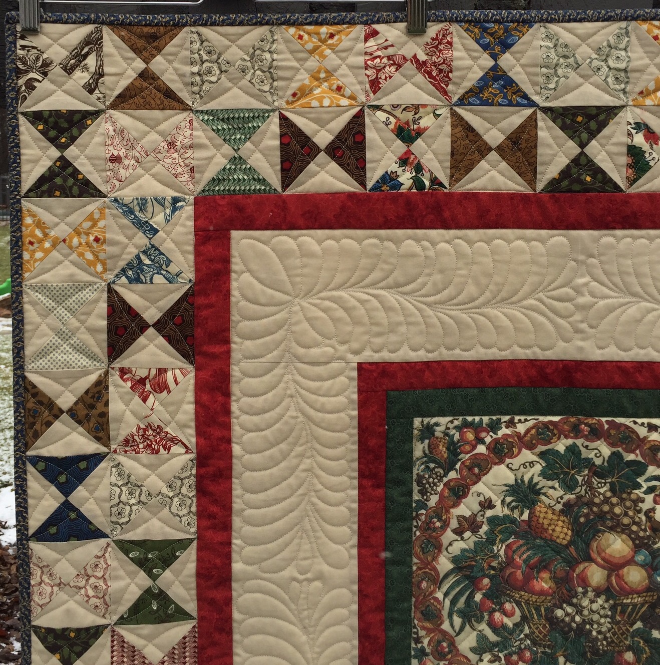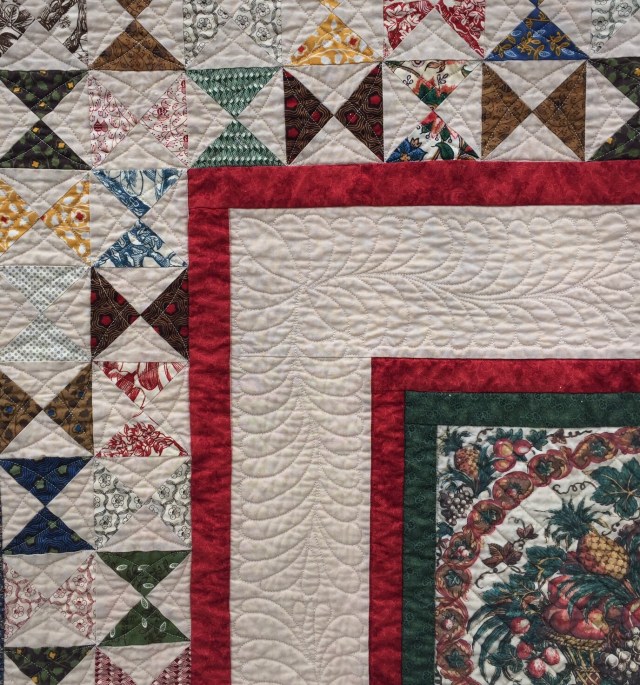 Oh, the scrappy hourglass border! Lovely finish! I will have to remember how you quilted the HG units.