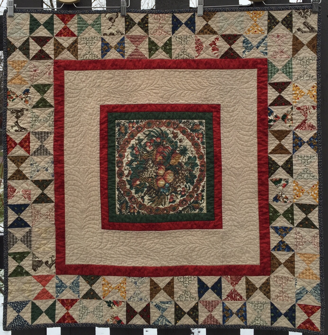 Beautiful wall hanging. Looks very stunning over your fireplace mantel. The border and quilting is gorgeous.