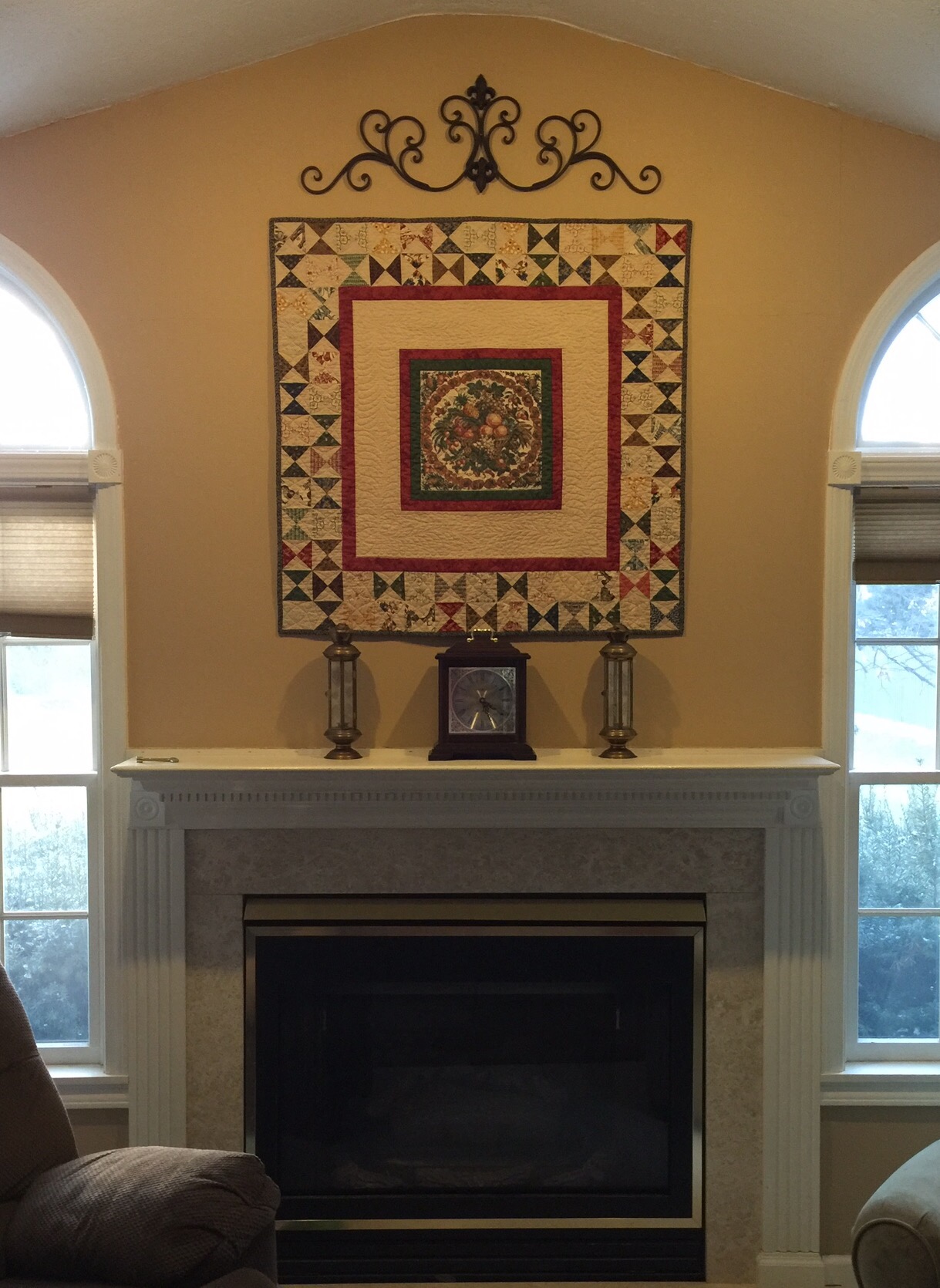 Your quilt is a work of art, and it looks fantastic hanging above the fireplace.