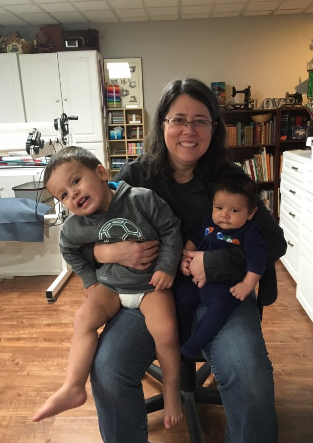 Your babies are adorable!! Thanks for sharing the Block Lock ruler. I have never seen that one before. As if I need another ruler (Yes! Yes, I DO!!). I like the blocks you’re doing for the donation quilt. Have you thought of alternating the direction of every other block to create X’s out of four blocks? You could do them by color, too, if your stack of squares permits. Like four different yellow prints together, four different purples together for another X. Just an idea.