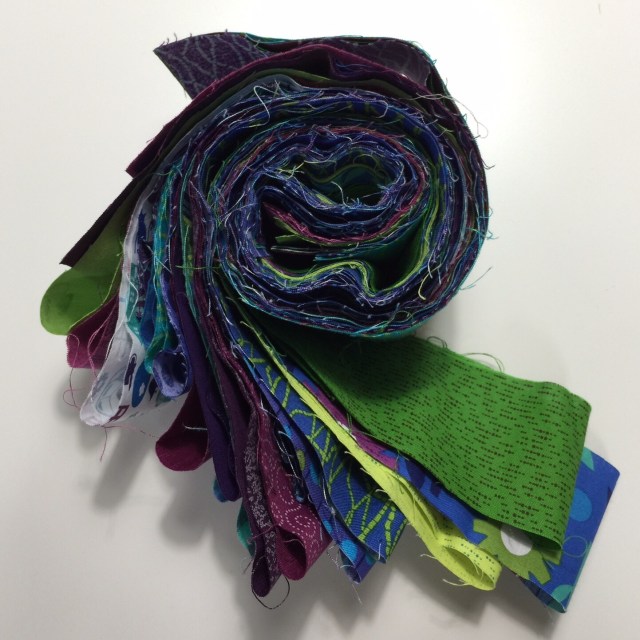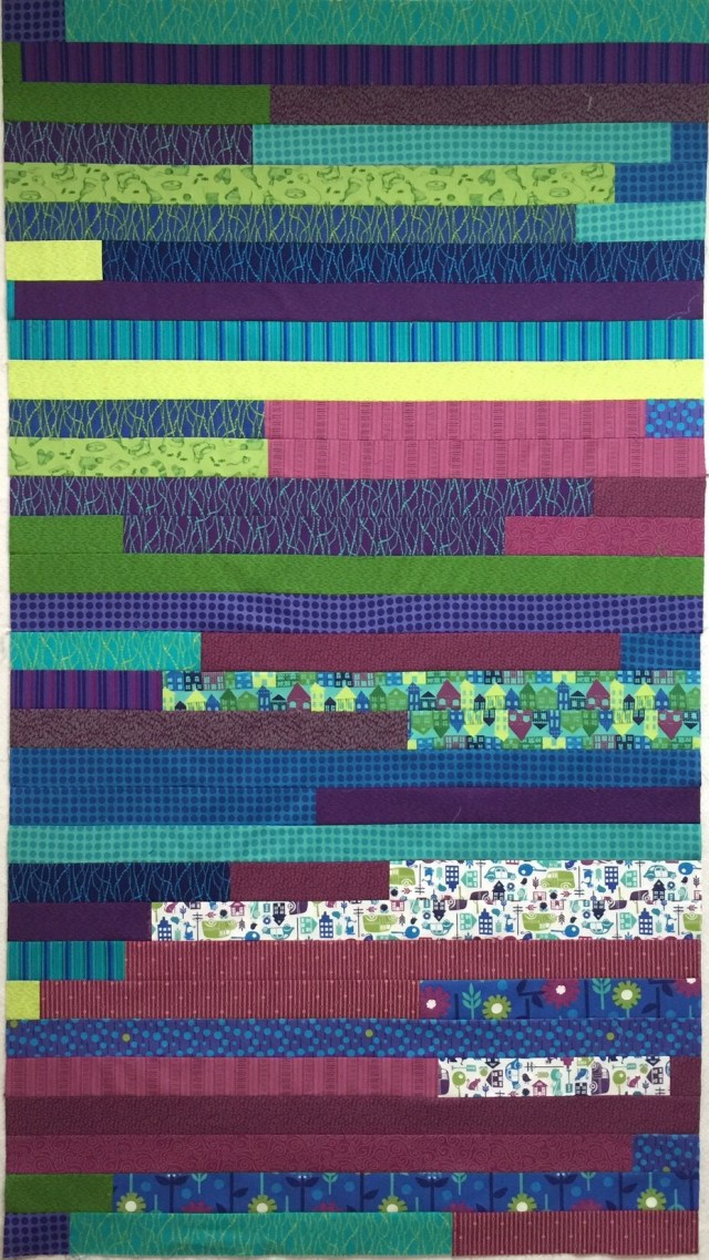 If you make one, your finished size will depend on the total length of your strips when they are all sewn end to end. Some of my strips were full length, but many were shorter. I just randomly sewed them together. Some patterns have you sewing the strips together on a diagonal, some have squares sewn at the end of each strip before the next strip is added.