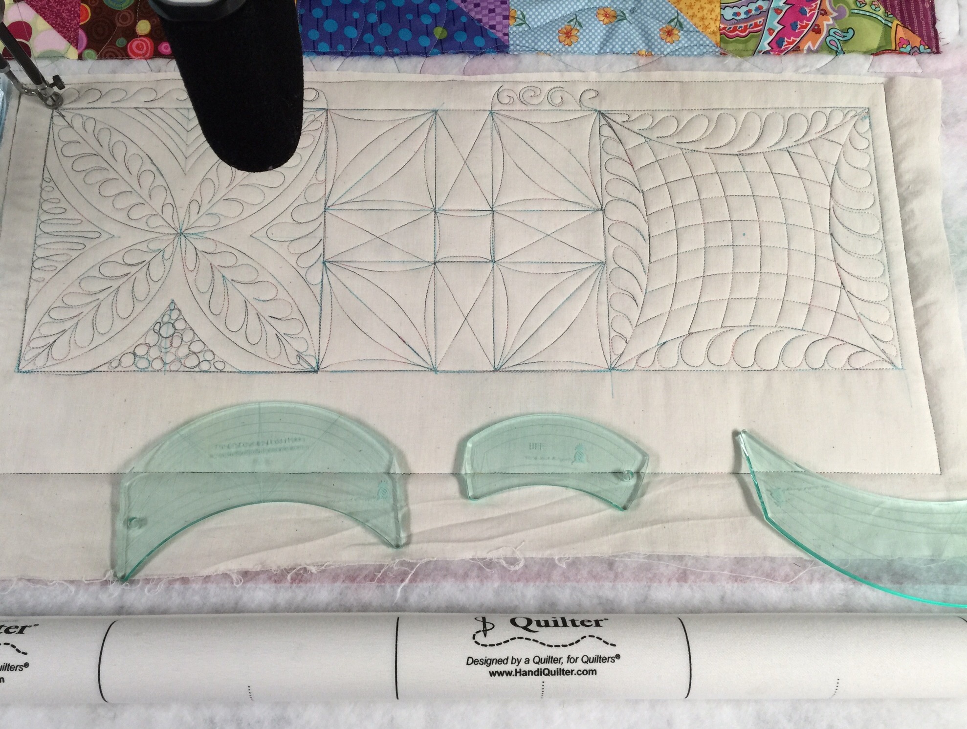 One of these days, I am going to get my Metropolitan Fair quilt quilted! I decided to try a few designs out that might work for that quilt.
