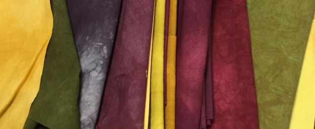 Do you ever wake up in the morning with an idea that demands your attention? That happened to me yesterday. So I grabbed this pile of hand dyed fabrics.