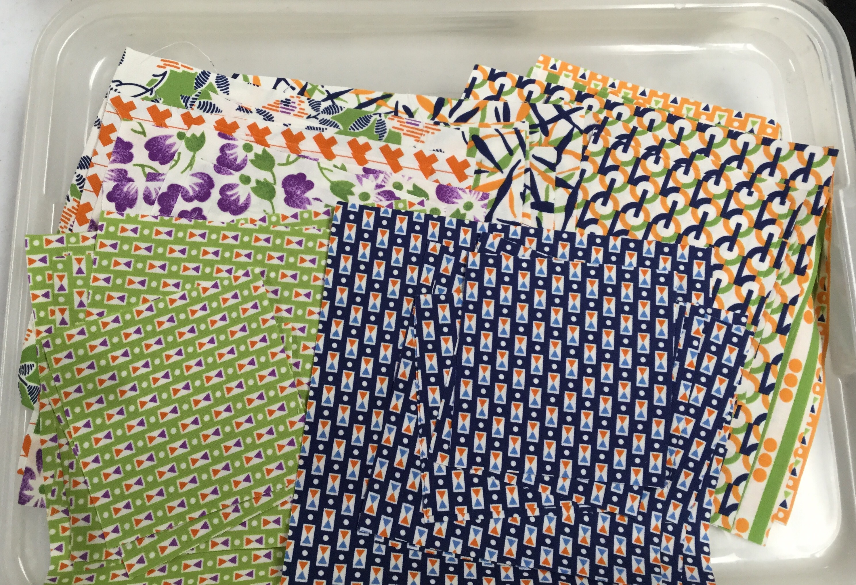 I got all the red/yellow/blue fabrics sewn into blocks and then stopped. This is what the rest of the fabrics look like.
