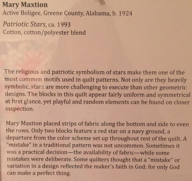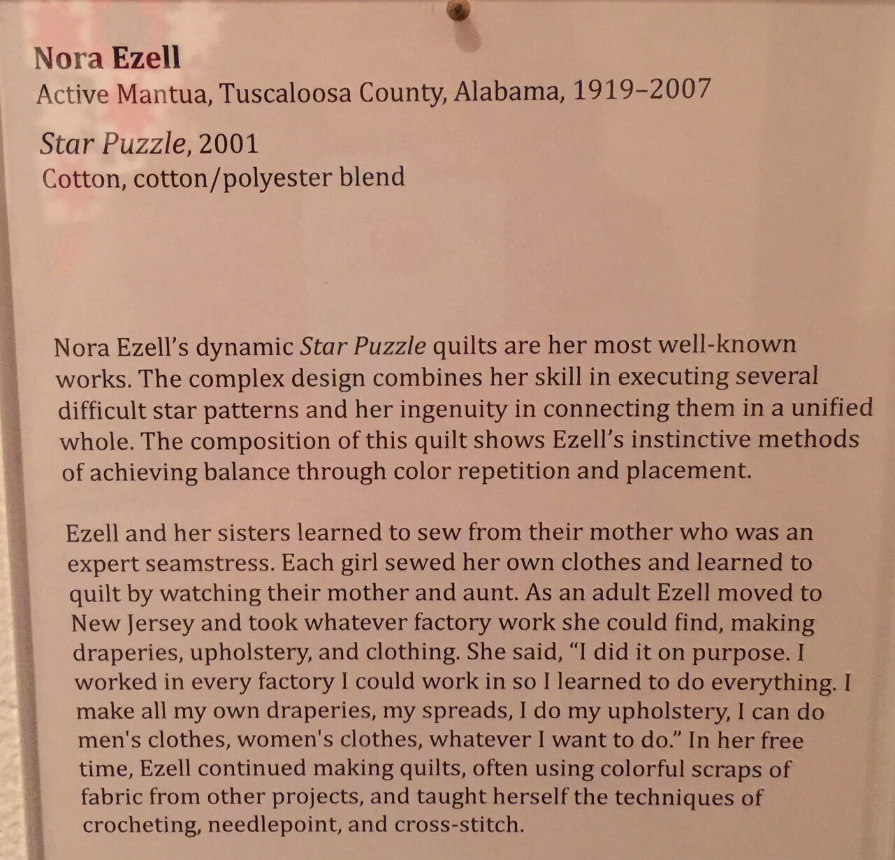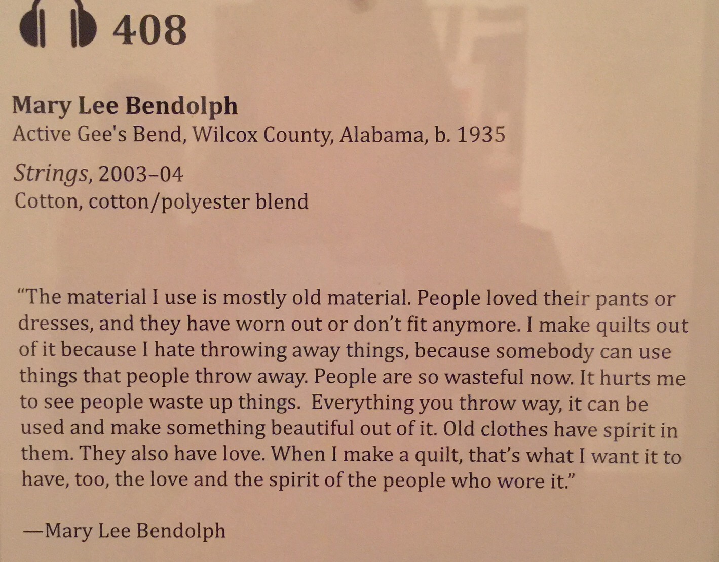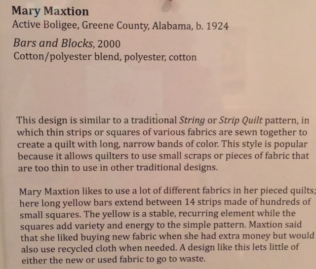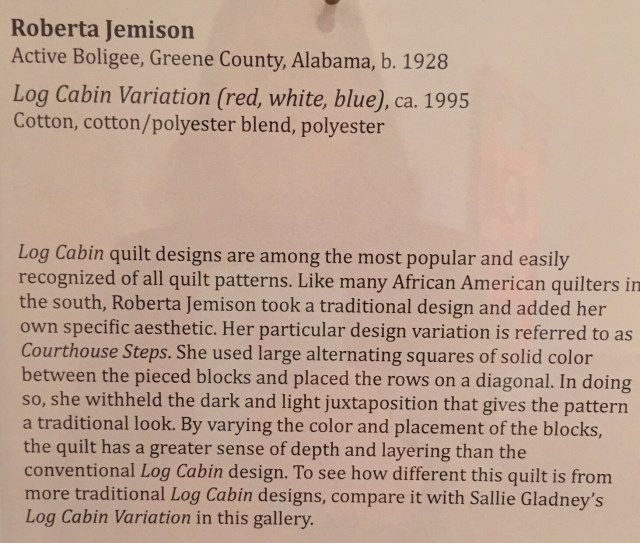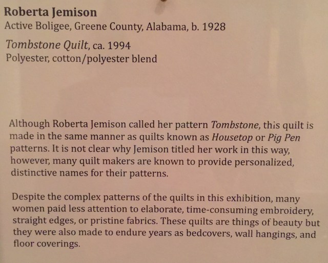 I finally went through my photos from the exhibition at the Flint Institue of Art. I took photos of many but certainly not all of the quilts. Info for each quilt is below the photo of the quilt.