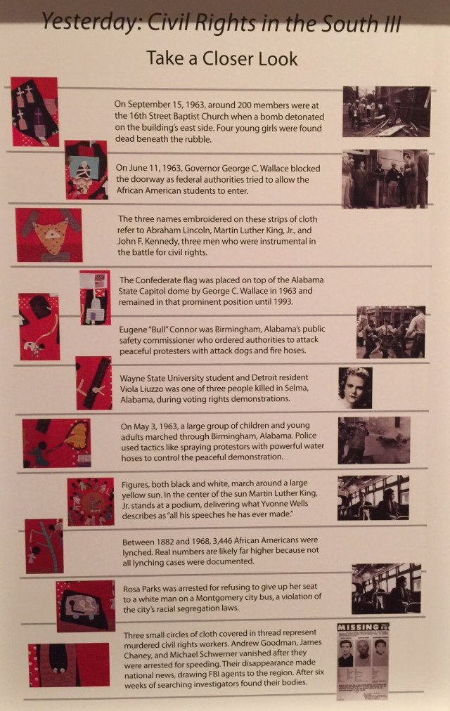 Katy, did you say that these quilts are in the Flint Art Museum? If so, I will contact them to find out the schedule for this exhibit. I grew up in Flint and will be visiting this summer. I’ve seen an exhibit of the Gee’s Bend quilts and would love to see this one. Thanks for sharing.