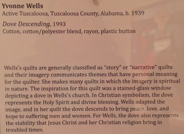 I have shared several of the quilts from the recent exhibit of African American quilters from Alabama. The quilts I am sharing today were part of that exhibit. These were all made by Yvonne Wells.