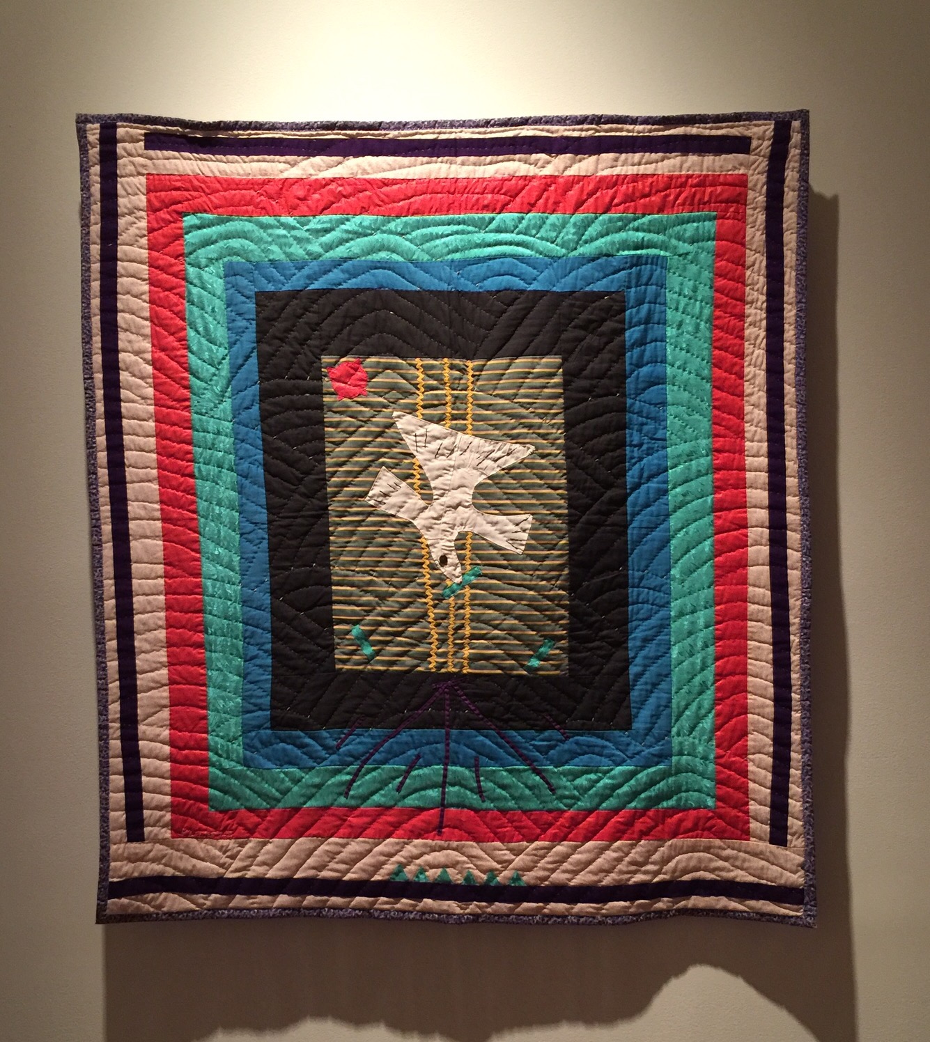 As well as the fascinating history depicted in the quilts, I’m intrigued by the quilting. Those kind of naïve Baptist Fans cleverly add perspective to the pictures. Thanks for sharing these, very thought provoking.