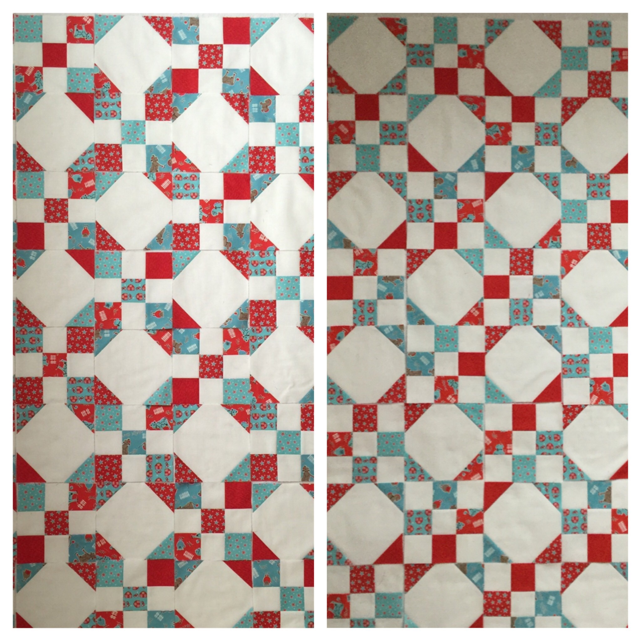 Oh I like these! Interesting how they are the same, but look so different. And the size is perfect for loading/quilting at the same time – my favorite kind of quilts. Just whip those babies out!