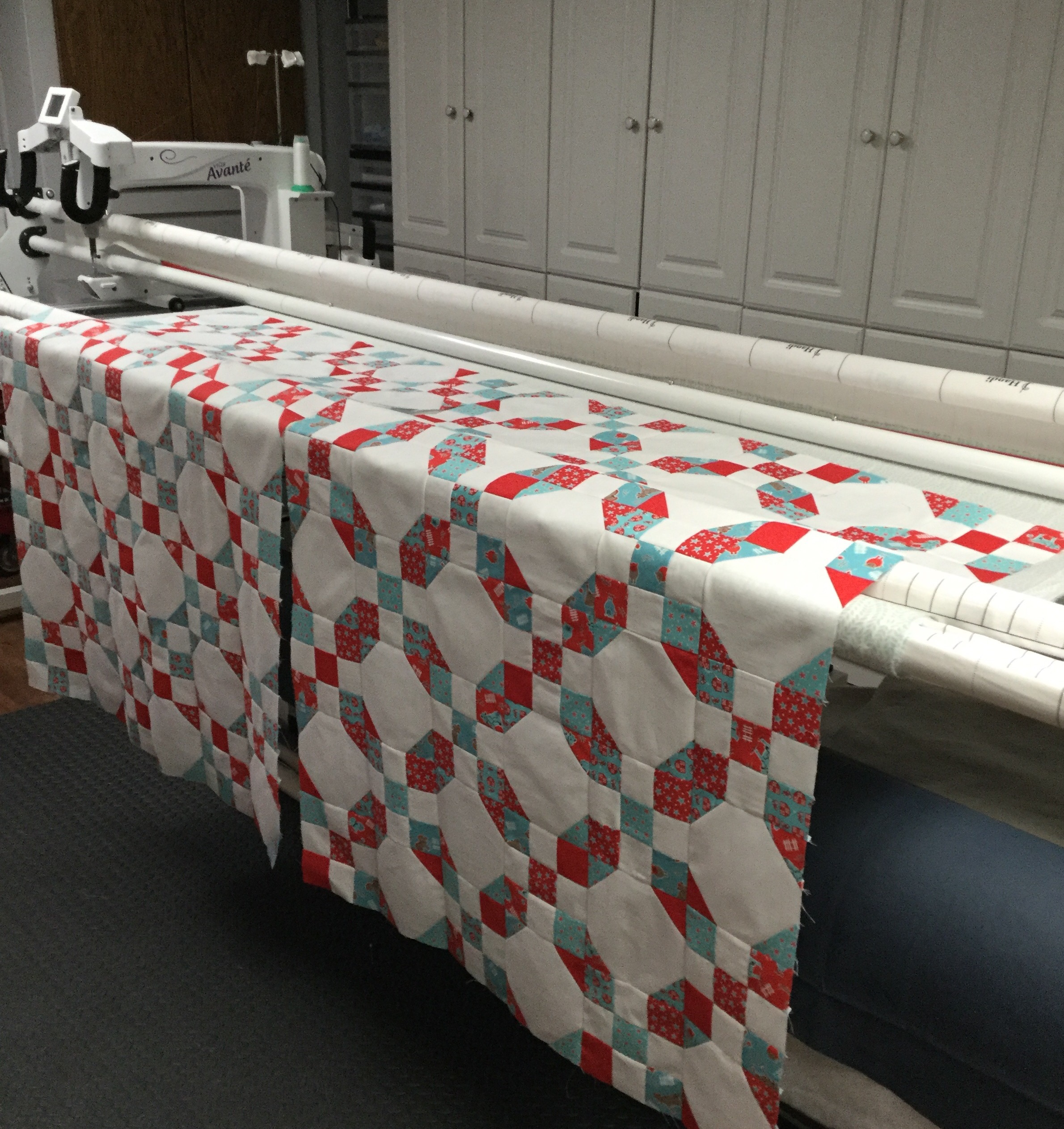 I just need to cut the batting and finish loading. Today will be a very busy work day so we shall see if I can get that far.