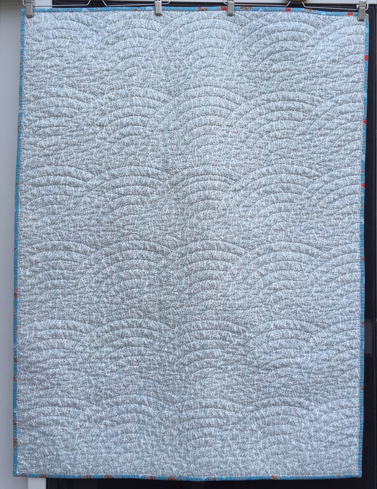 The backs of both look exactly the same. As you can see, I’m still crushing on the Baptist fan quilting design. I’d rather forgotten how much I loved it until I quilted my Goose in the Pond quilt this way. If you recall, I marked the pattern with a stencil and chalk spray for that one. It was a lot of work, but worth it in the end. It did make me start searching for an easier way to do this on my long arm though.