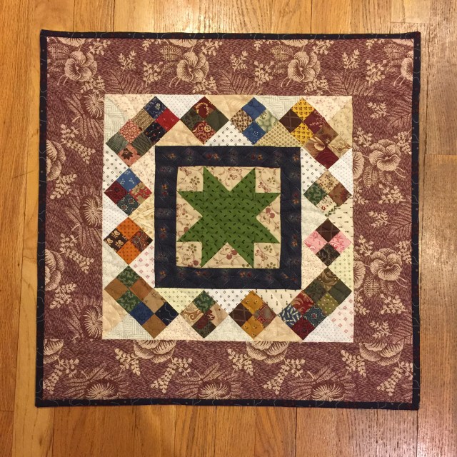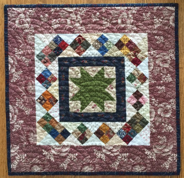 What a charming little quilt. The Baptist fan quilting reinforces the vintage look beautifully.