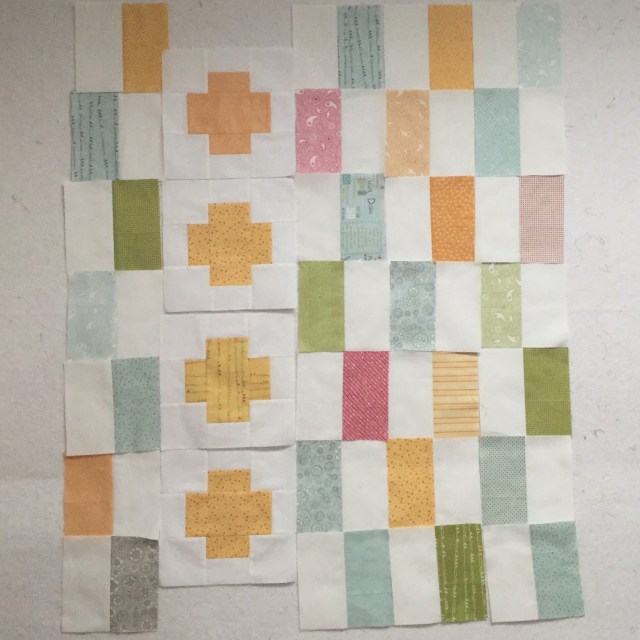 I’ve also found a few more blocks, not pictured, that were made from this line that I am including as well. I said I would sweeten the pot a bit with a handmade item. So I am sending along this little 4 patch quilt that I finished on my trip to Arizona in February.