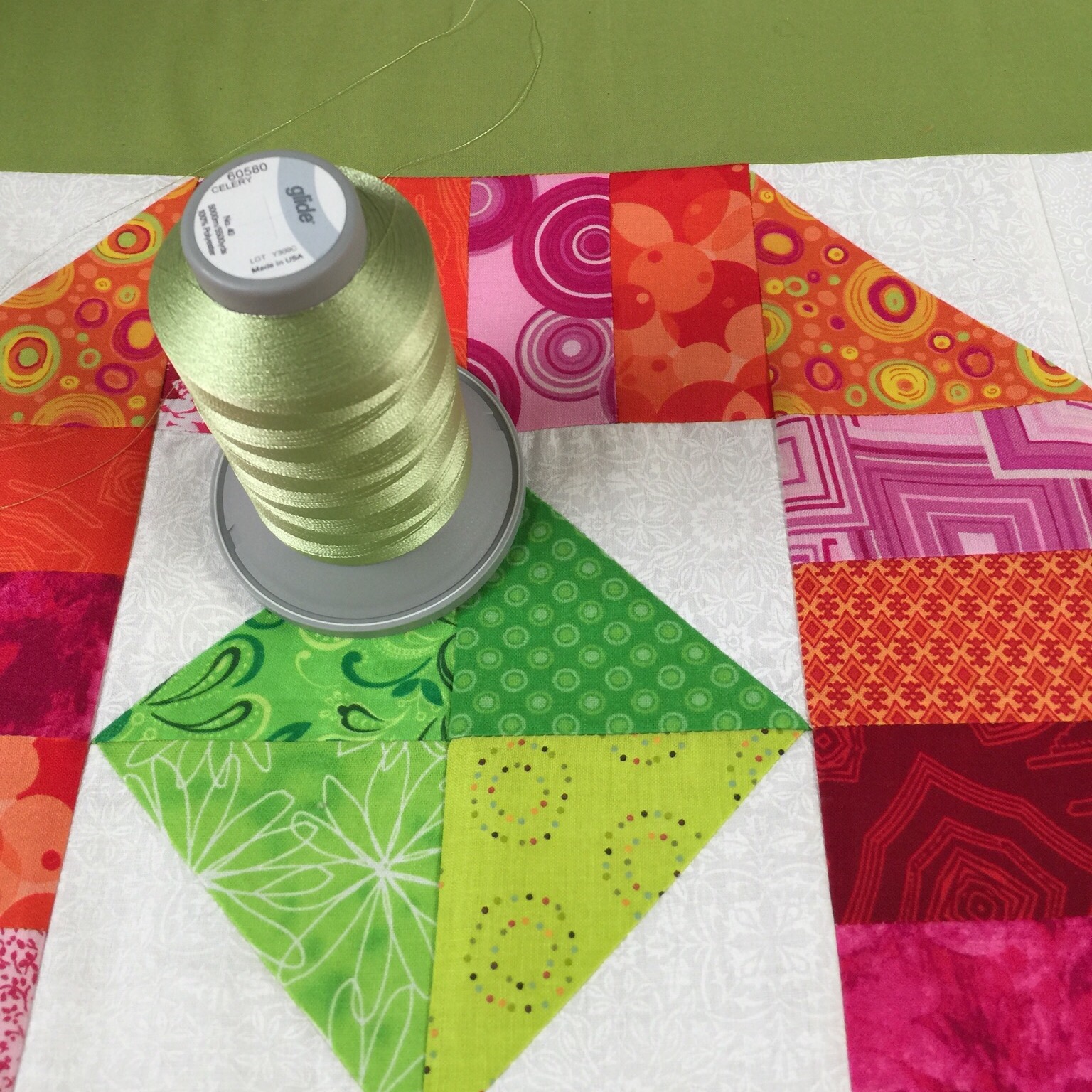 I am using one of my favorite colors of Glide thread, Celery.