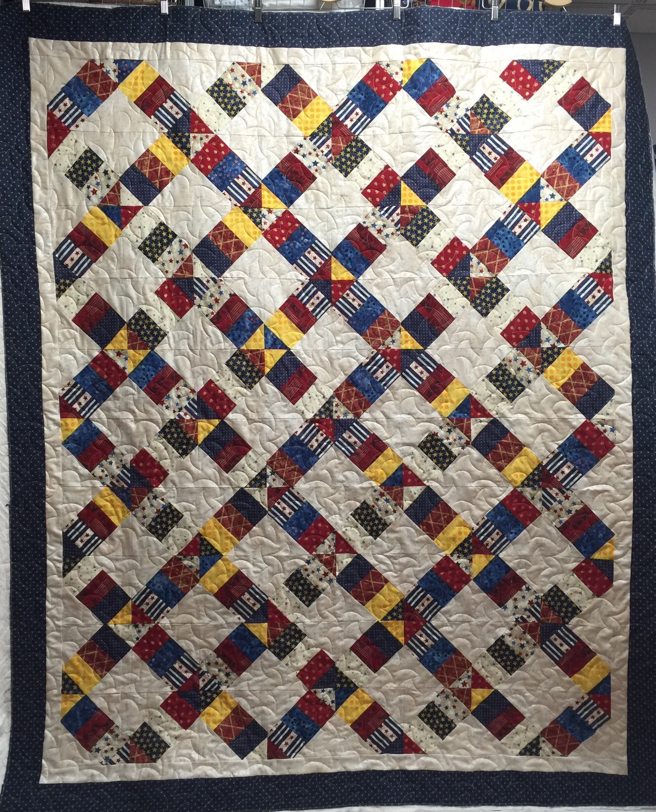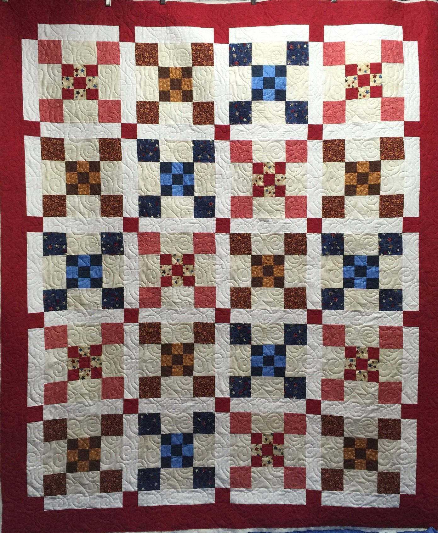 Love them all…particularly the one with the nine patches….and your quilting is amazing!