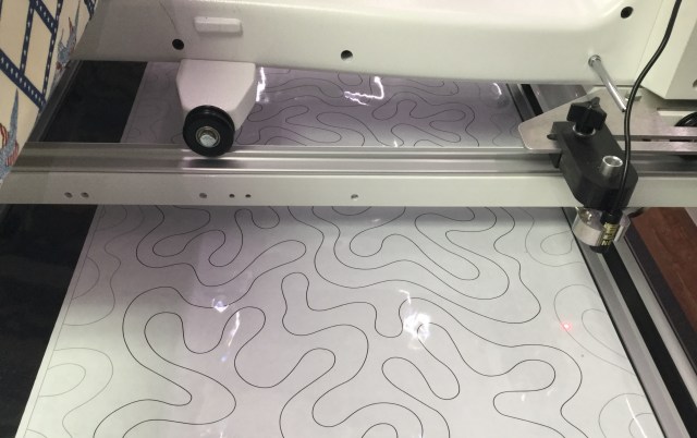 I have some heavy vinyl laying on the table of my frame. I lay the paper pantographs underneath that. It keeps them in place and I use a grease pencil to mark the pattern as needed. A dry towel is all I need to erase the marks. I purchased this from JoAnn’s in the home dec area.