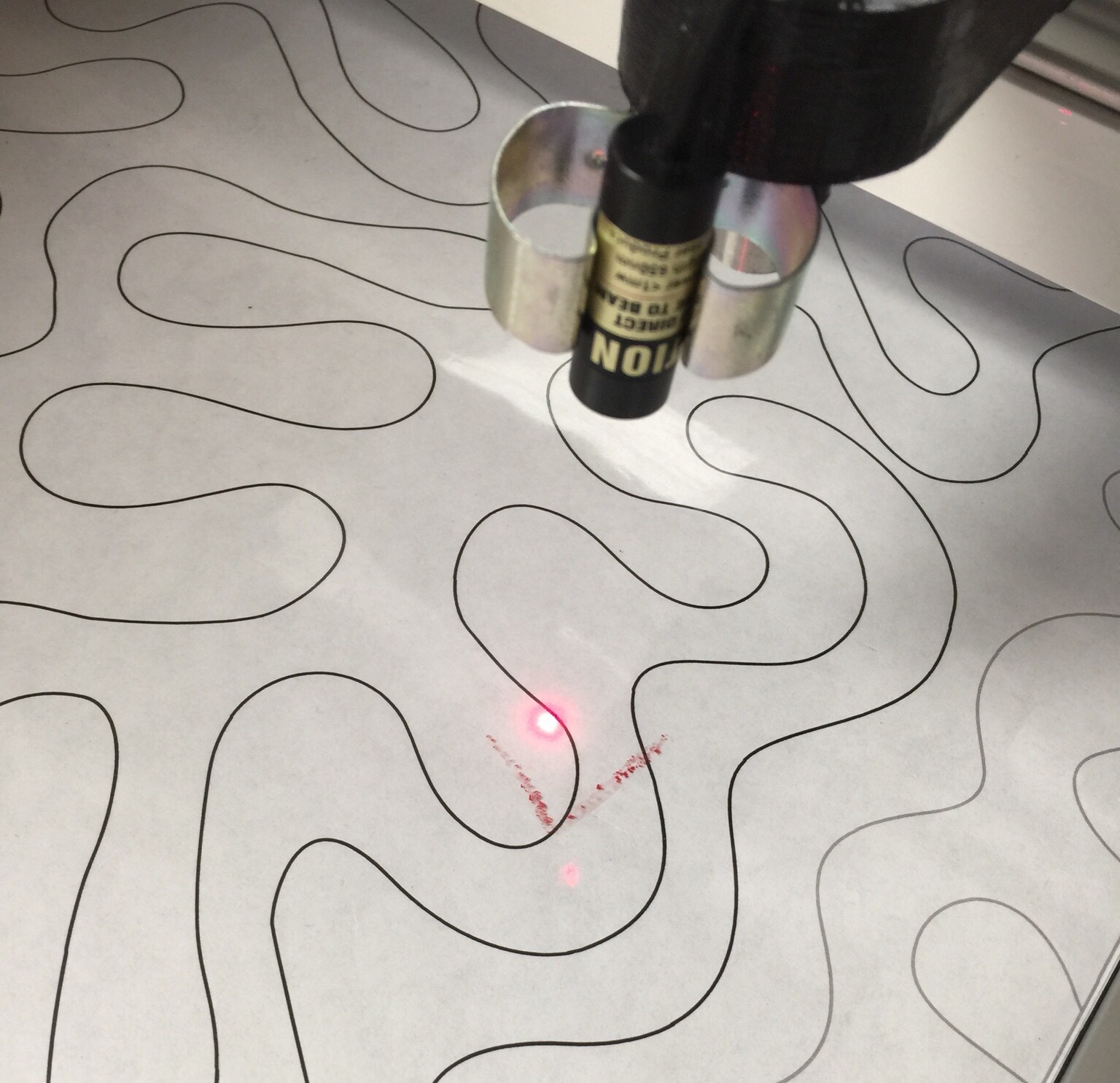 You can see in the next picture, that the laser light is on the corresponding part of the paper pattern.