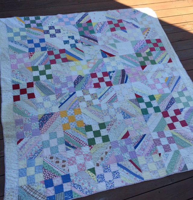 What a beauty! I love the combination of the nine patches and the string blocks.