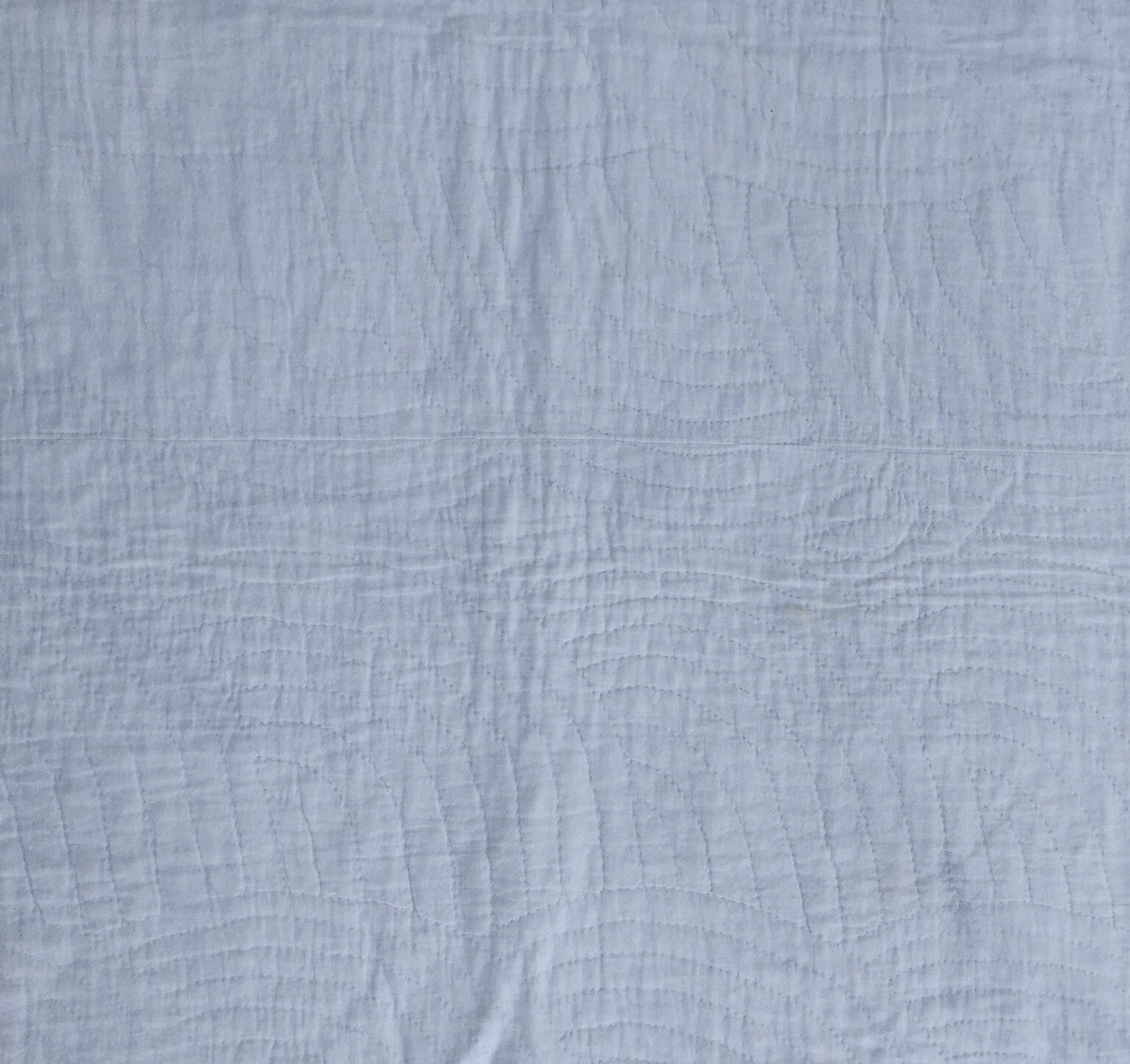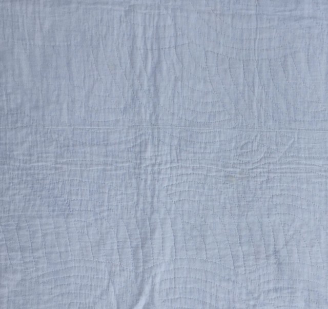 The backing is a plain muslin. It was hand quilted in a frame. You can see on the back that they worked the fans from opposite sides and met in the middle.