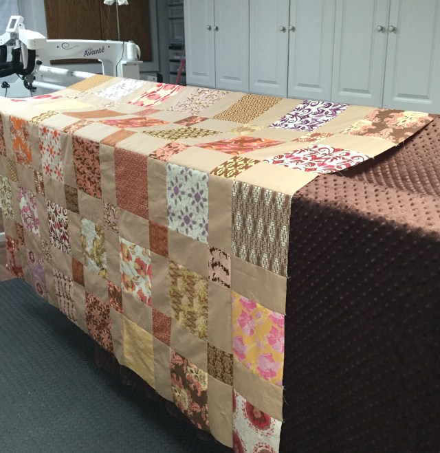 I’m no help. I know nothing about minky or longarms. But that backing looks so rich and soft. I hope you find a solution because it’s going to be lovely. I love the contrast between the cottons on the front and the softness of the back.