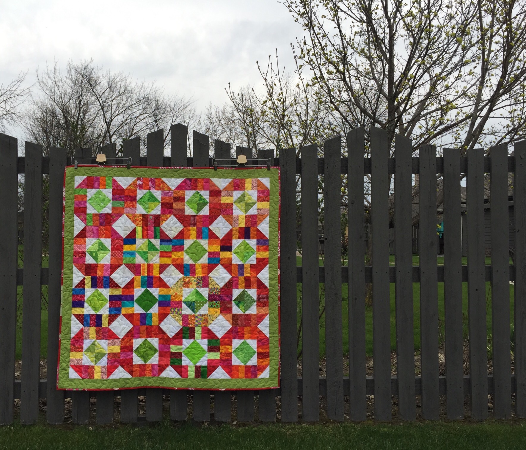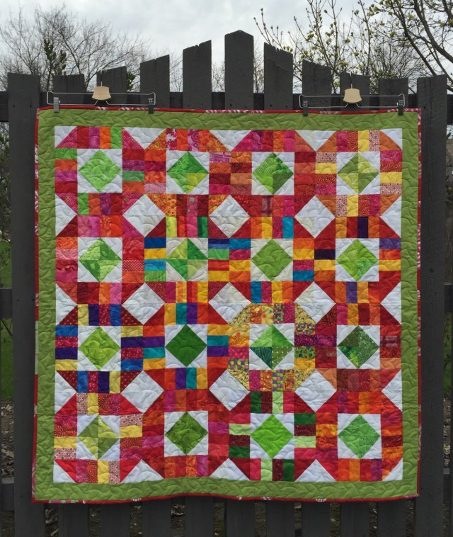 Great quilt, and great method for making pictures! I’m always trying to figure out how I can photograph my quilts when I have nobody to hold them for me, which is most of the time!