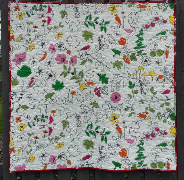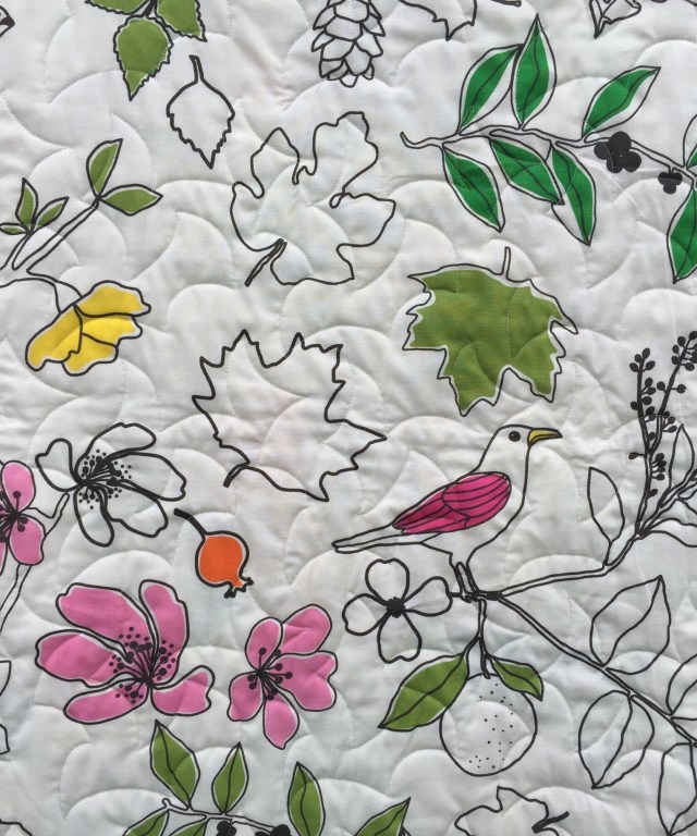 What a great quilt! It will certainly add some sunshine to someone’s day. I need to look for fabric at ikea! The backing fabric you used is beautiful! Wonderful finish.