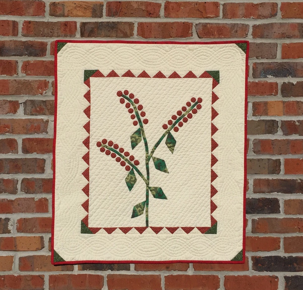 I have loved Gwen’s work for ages. If there was one person I would like to sit and watch work in her studio, it would be Gwen Marston. I thought today I would show you a few of my Gwen inspired quilts. These are oldies! The first one was patterned in Ladies Circle Patchwork Quilts and it was called Pokeberry.
