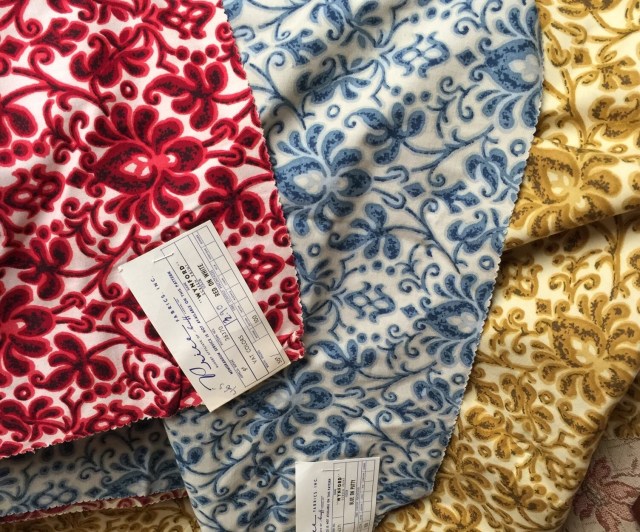 My dad not only saved the two sewing machines for me from the estate of my great aunt, but he grabbed a few boxes of fabric as well. In one, were these fabric samples.