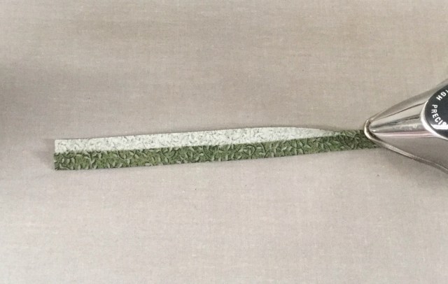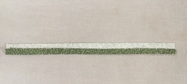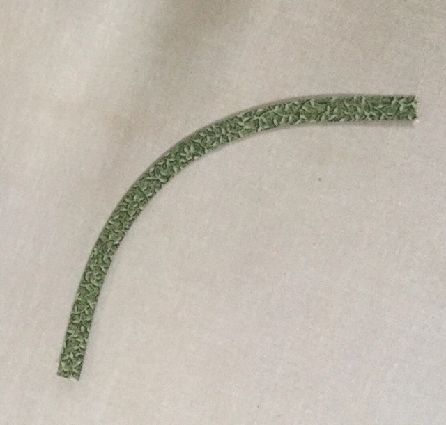 Better. Still not sure about this. Anyway, I thought I would show you how I made my stems. I remembered from one of Gwen’s books that she doesn’t necessarily cut her stems on the true bias and it works. So I cut some angled 1 inch pieces.