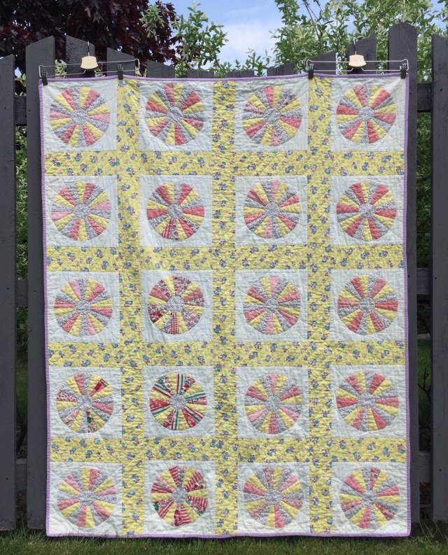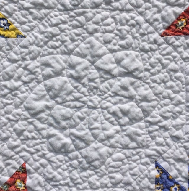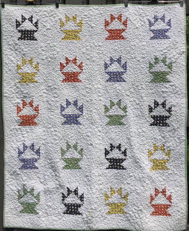 Oh I love both. I wish we could get good Provencal fabrics here. I bought some 20 years ago in St. Bart’s and have not had anything as nice since. The vintage top is adorable. I adore juvenile novelty fabrics and this one is a winner. Happy to see you hand quilted it, it is lovely!