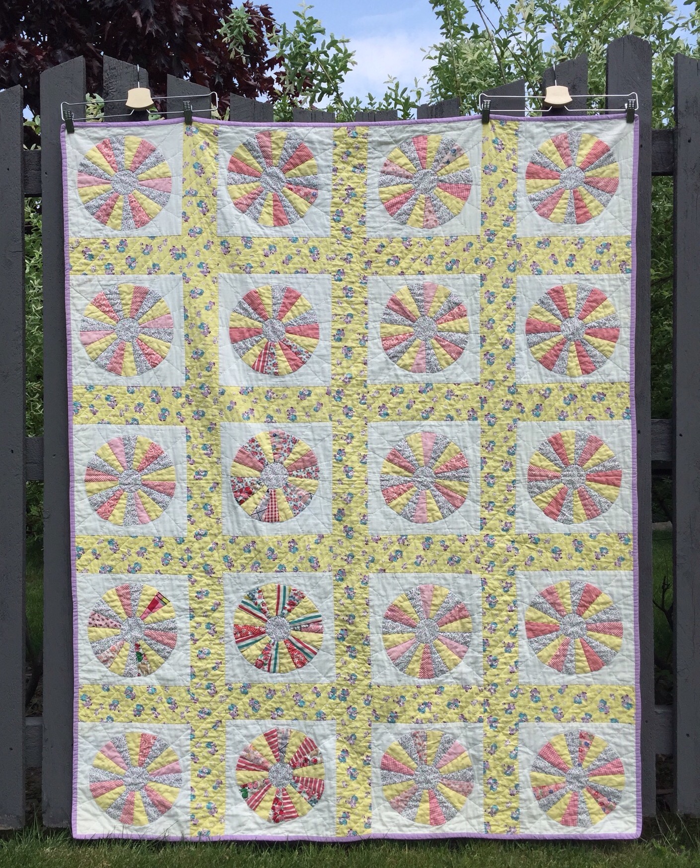 I quilted it simply and used a vintage purple fabric for the binding.