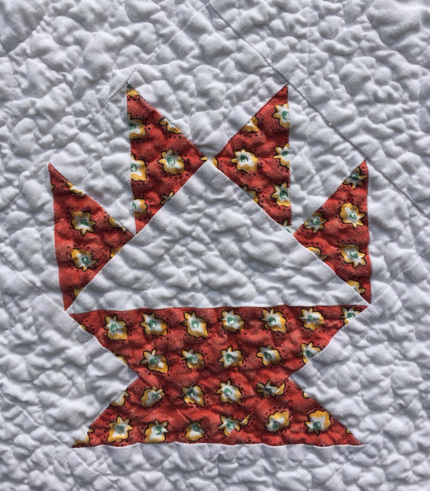 Oh I love both. I wish we could get good Provencal fabrics here. I bought some 20 years ago in St. Bart’s and have not had anything as nice since. The vintage top is adorable. I adore juvenile novelty fabrics and this one is a winner. Happy to see you hand quilted it, it is lovely!