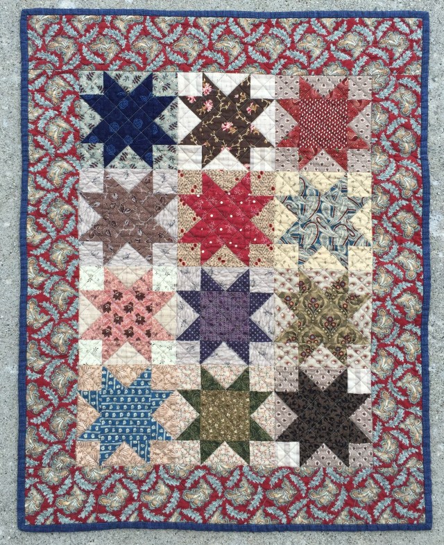 Love both of these quilts!! Civil War Repro fabrics are my favorites! The elongated hexie quilt is great…but I really, really like those stars!! The border fabric on that one just pulls everything together!! And the quilting is great on each quilt! Thanks so much for sharing!!