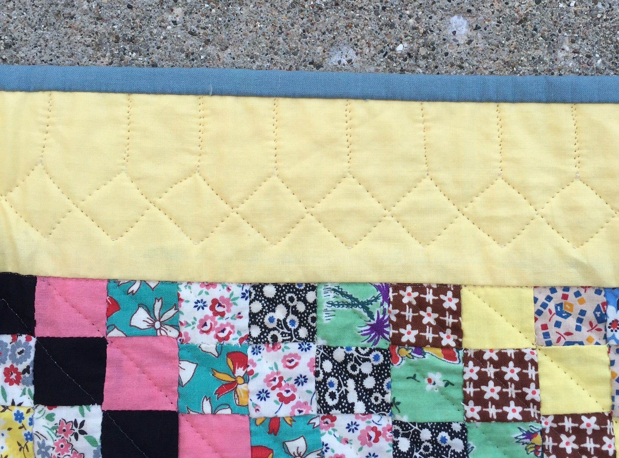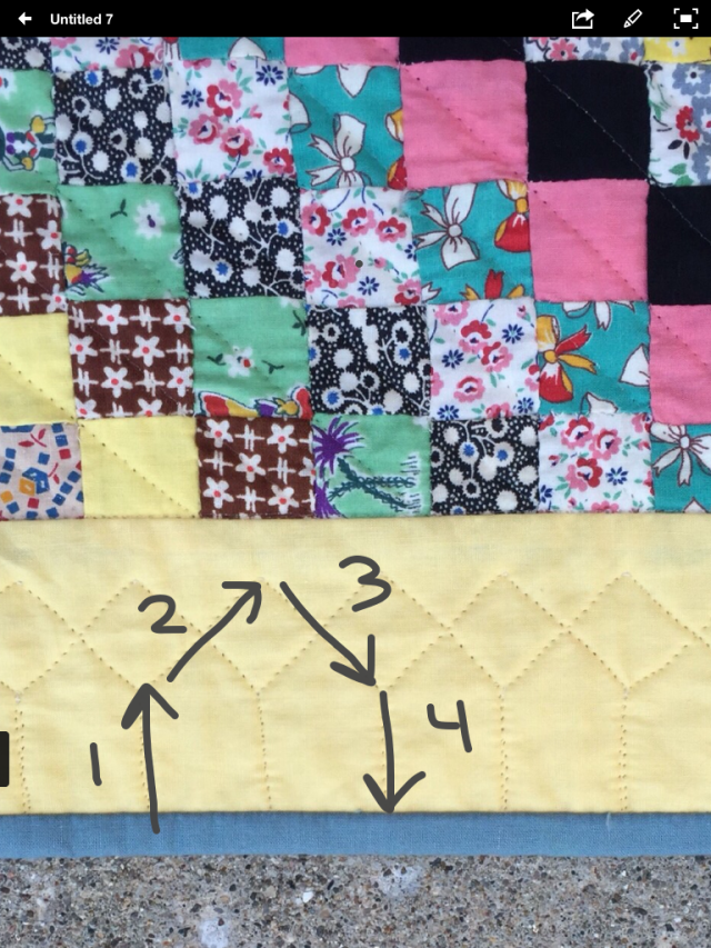 Love your “rescued” Trip quilt! What a great continuous stitch border design. I can see it would even allow for another variation: adding an additional line going up from the “house” peak. Definitely printing this out and filing it in the “Quilt Whisper” ideas folder!. Thanks for sharing it!