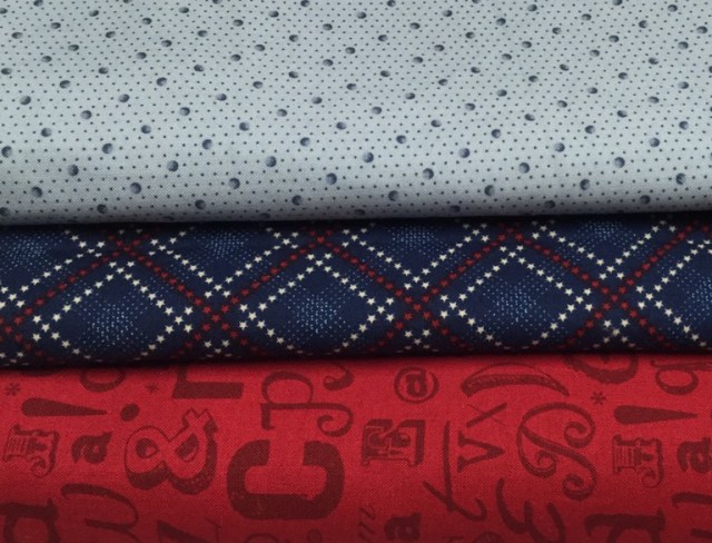 Remember when I said I used the navy polka dot that I had planned to use for the mystery quilt for the binding of the scrappy quilt? This shows what I decided to replace it with. I really like this one so much better so it all worked out well.
