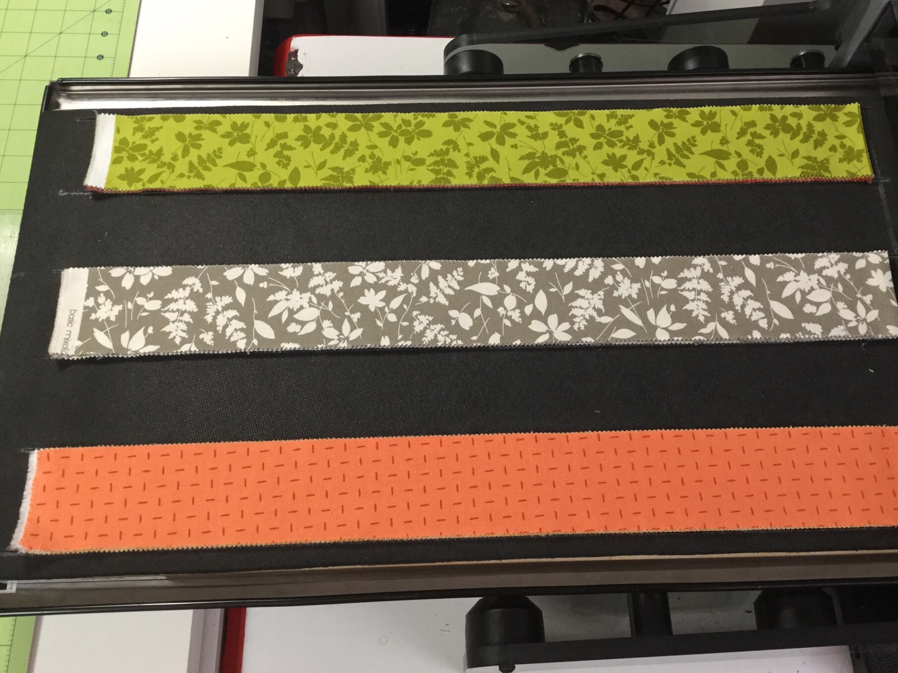 When I open a jelly roll, I press the strips and then lay them on my 2 1/2 inch strip cutter and run them through the studio cutter.