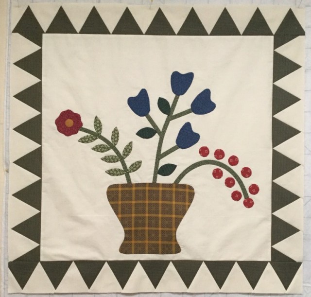 Much better. It does feel like I have too much white space in my center block. I may go back and add more applique there later on.