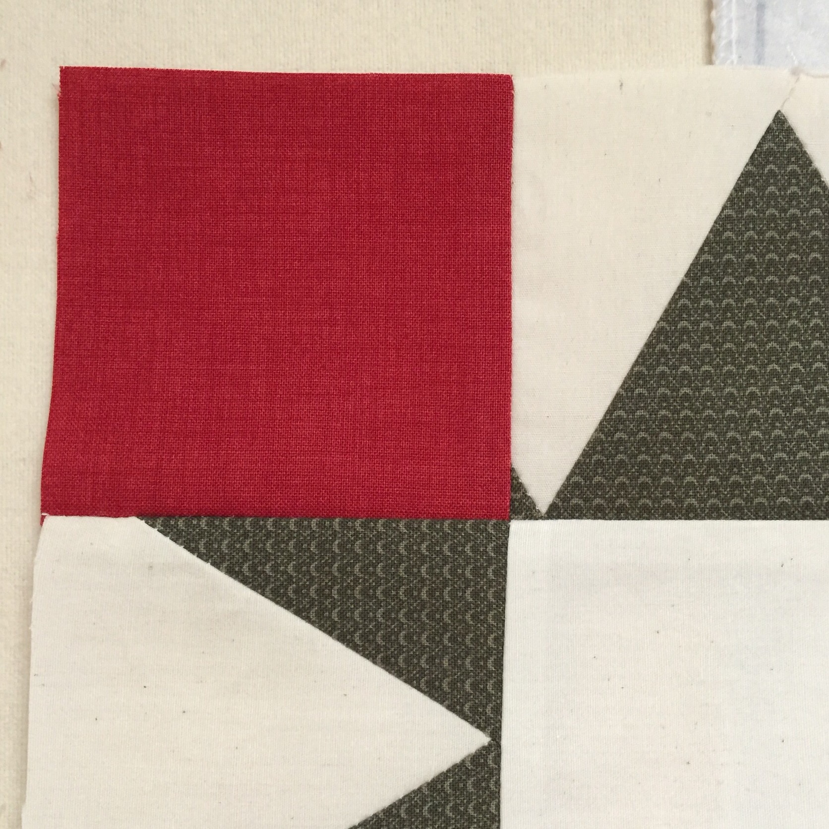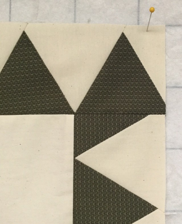 After letting it sit for a few days, I decided to rip out those corners and add some red corner squares. You can still see those tiny bits of green triangle in the corners, but they are staying!