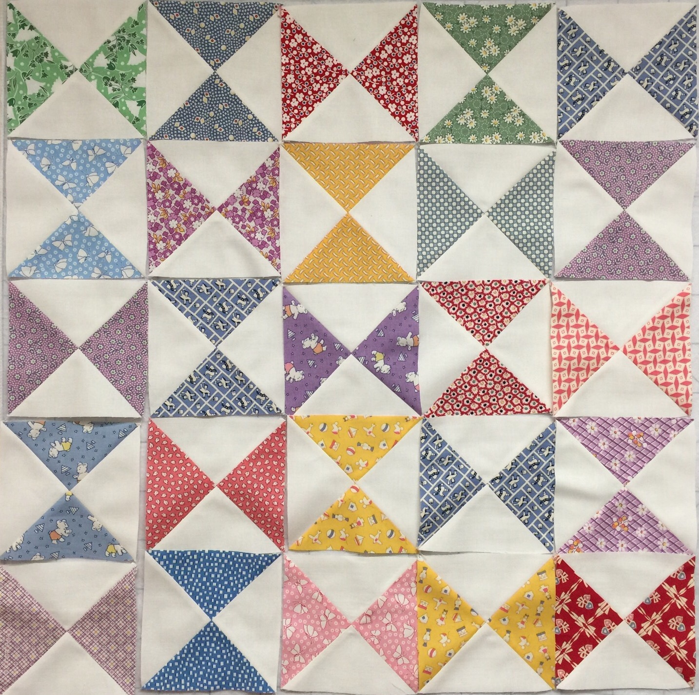 These are adorable in 30’s. You can always make two tops if you cut more! I need a L/E project, too, and I was just going to do 4 patch. These look like more fun! By the way, just love the QOV top that you quilted with the feathers. It is beautiful.