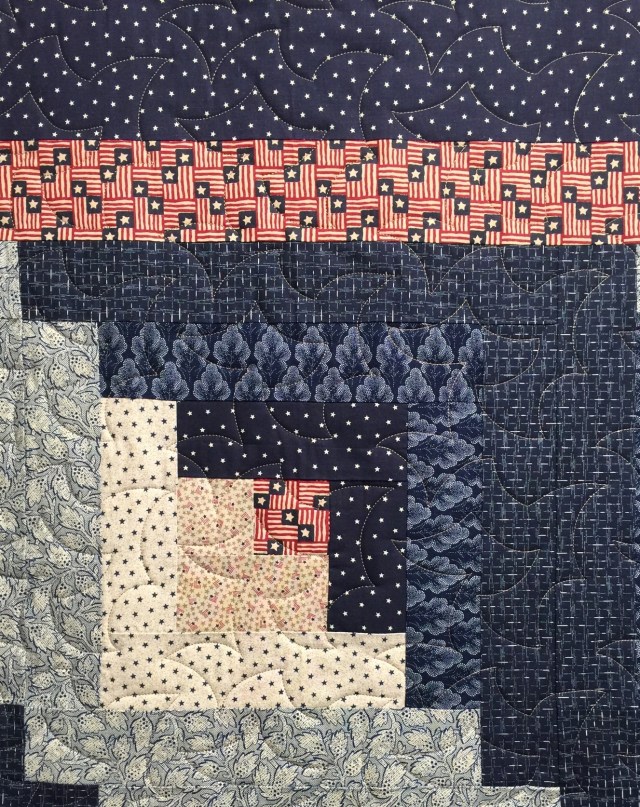 Love, love, love this log cabin quilt. The colors and prints are just yummy together and your choice of quilting is perfect. I hope you and hubby have a great weekend with your family.