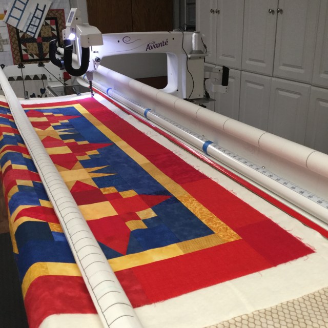 Yesterday was a productive day. I got my laundry done, made some phone calls, and finished unpacking. But you are not here to hear about my chores. I finished the QOV that I had in the frame and got the next one loaded.