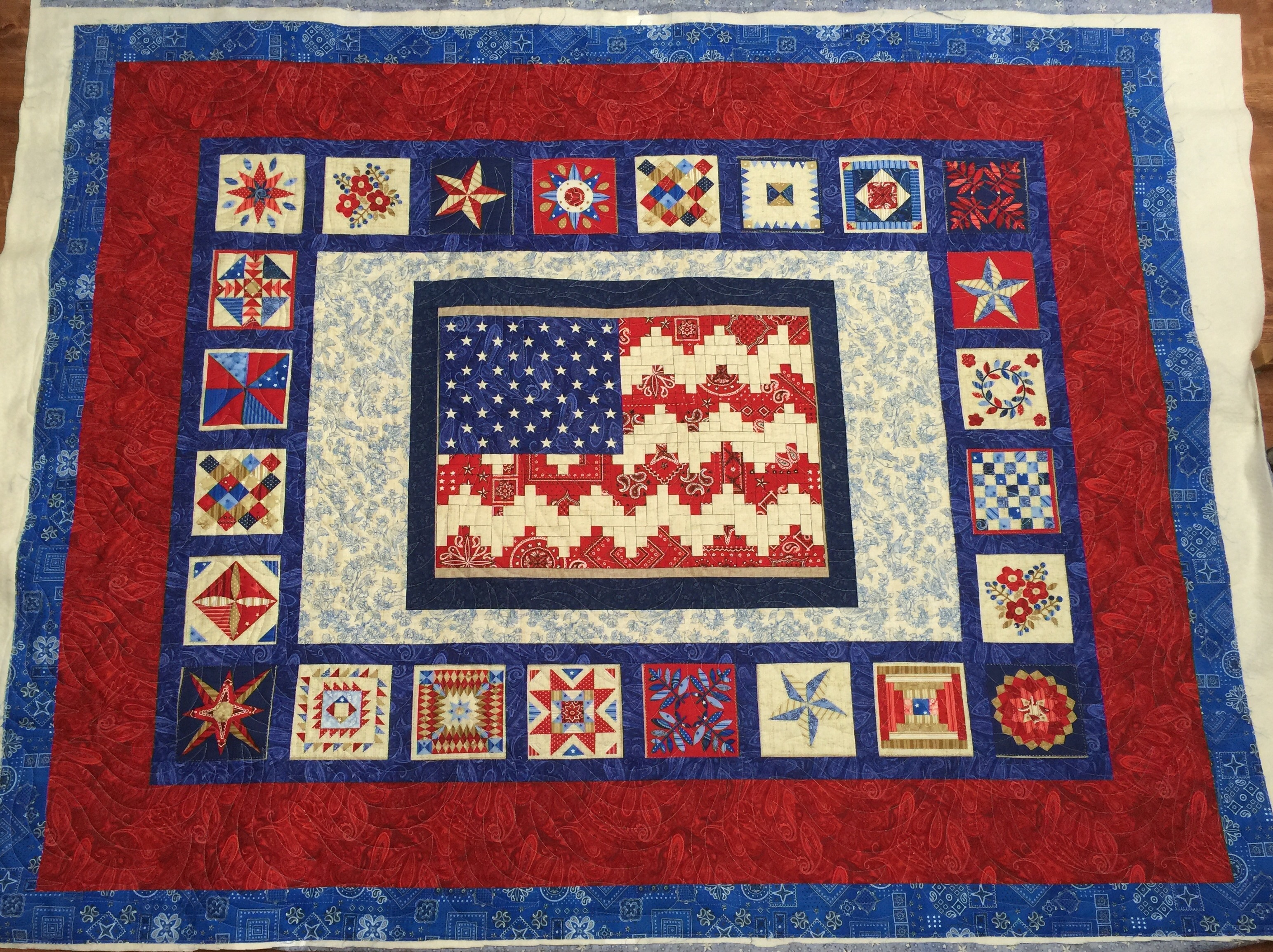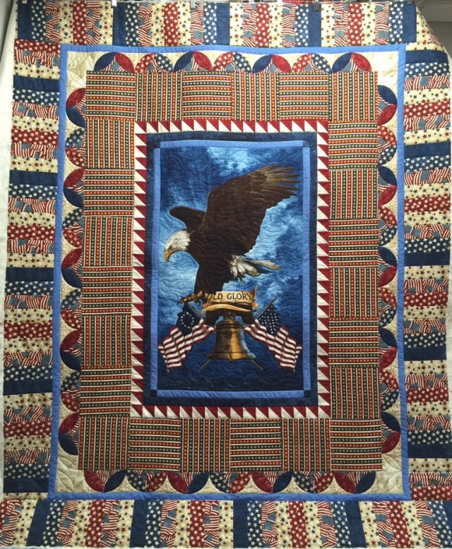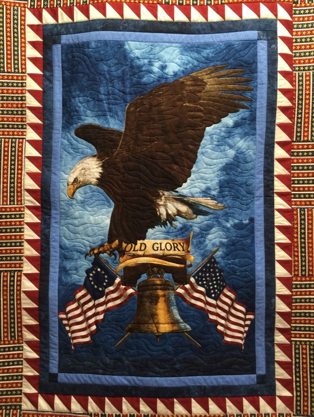 Katy… nice long arming on these quilt… love that preprinted Old Glory too! Is the flag top all pieced or was it a preprinted one too?? I am glad you used a panto.. I am a hand quilter but follow enough longarmers that I do understand the process… however I look forward to reading your thoughts on decisions made tomorrow! 🙂 Have a blessed Friday Katy! Kathi