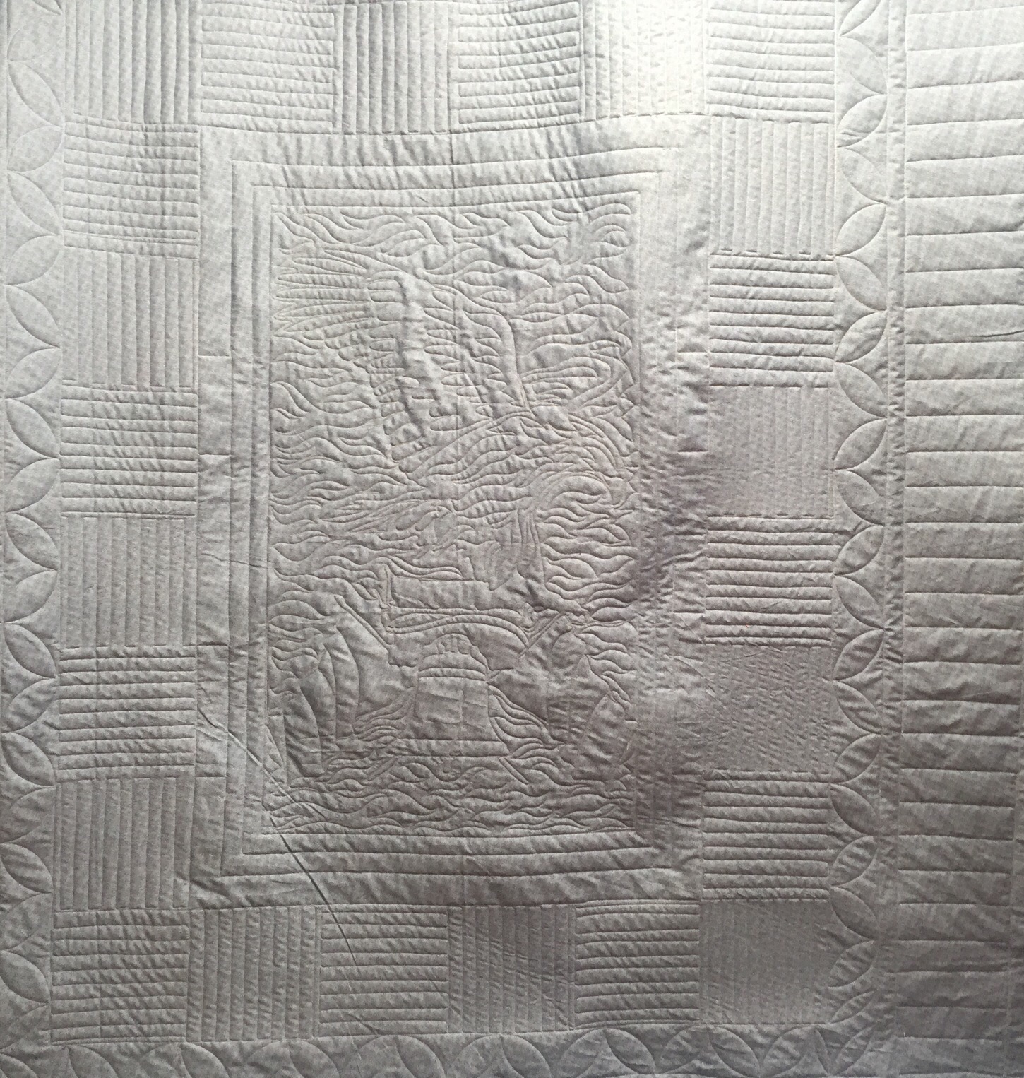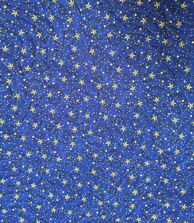 The center panel was quilted freehand. I love this one! And here is a look at the back. It is actually a lovely blue, but I couldn’t get a picture of the true color.