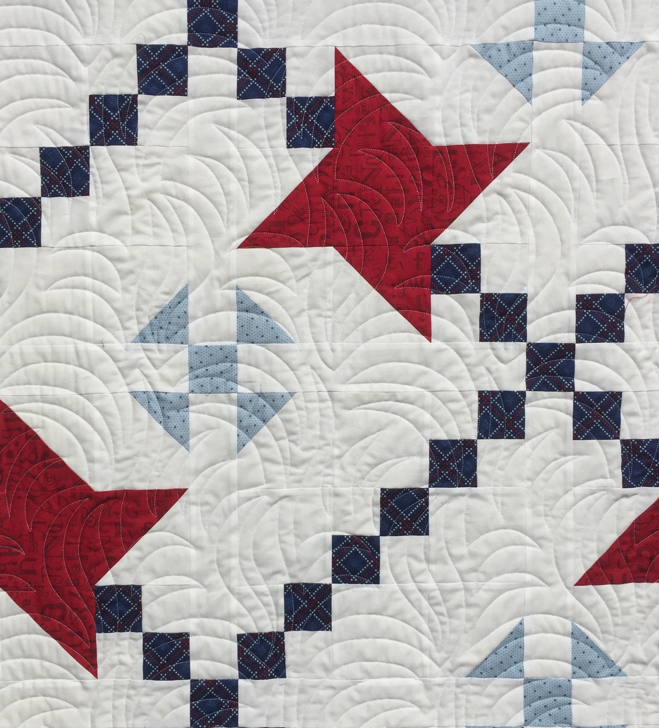 The quilt is really pretty; I like the simple design. The quilting design you used really finishes off the quilt well! Nicely done!