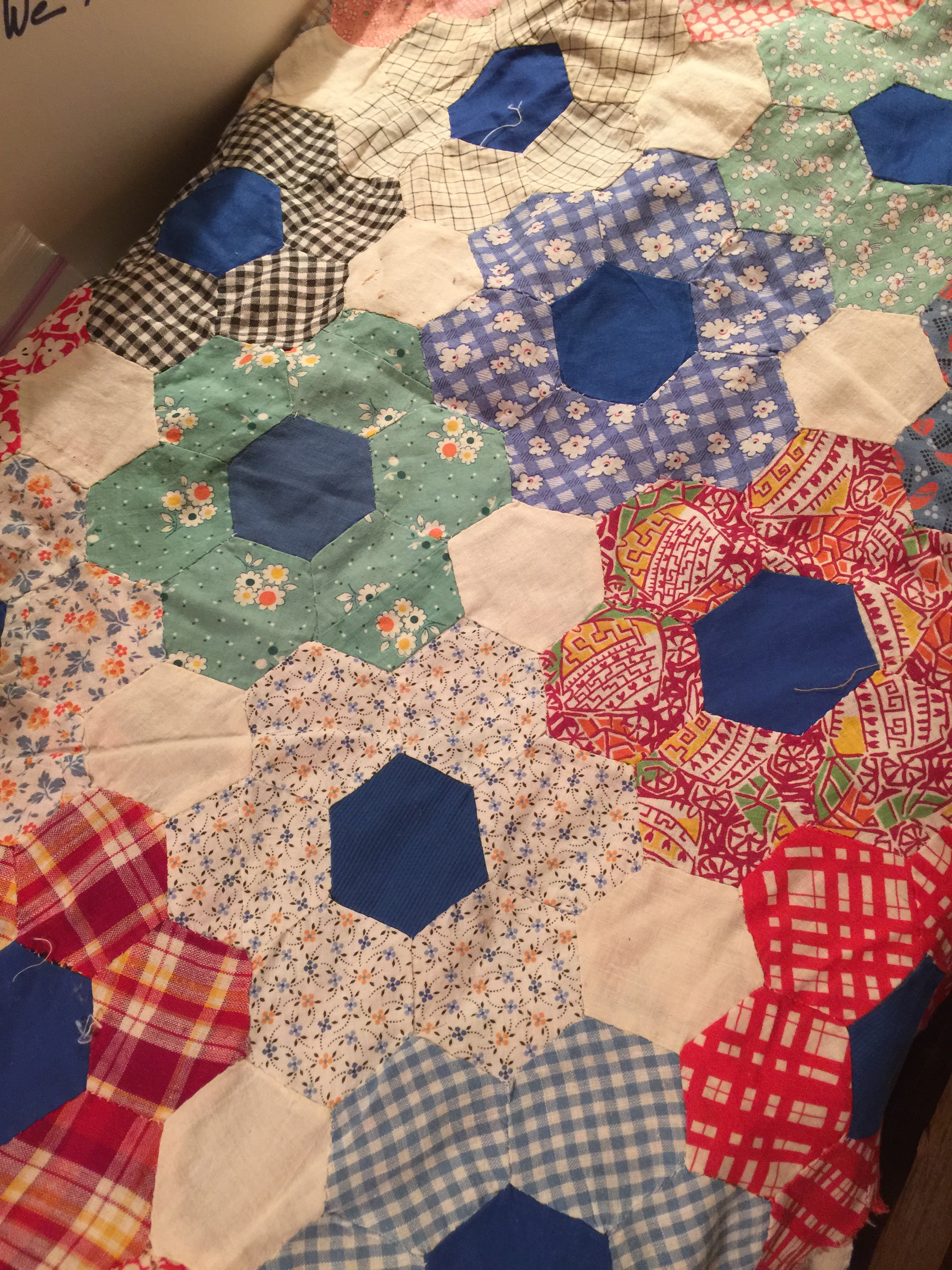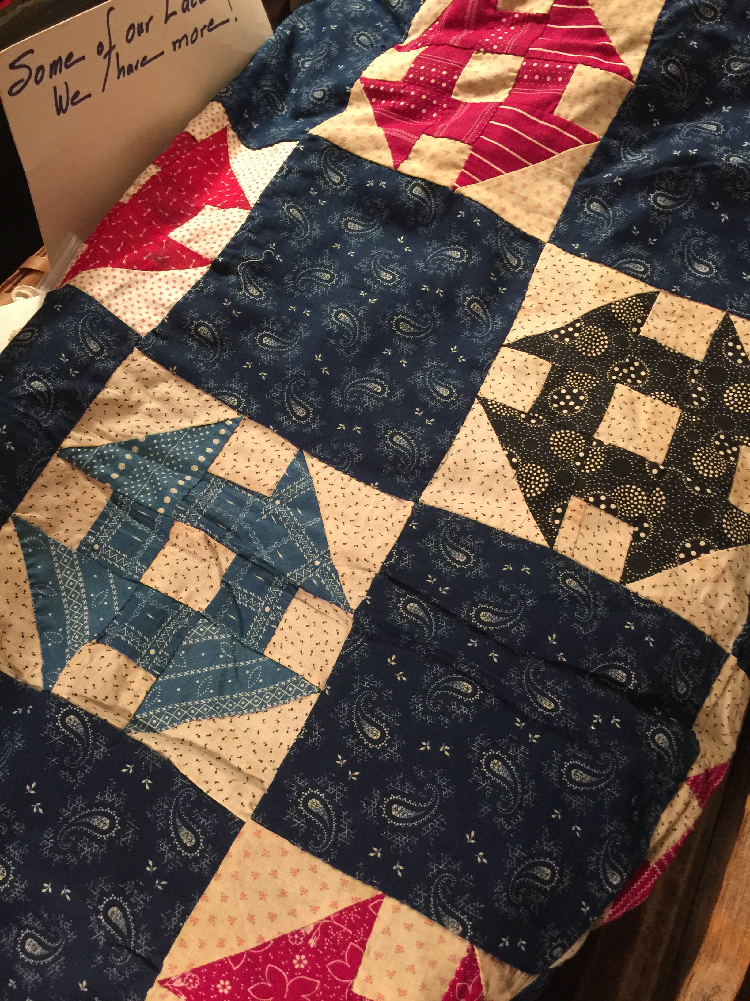 This quilt was simply amazing!the fabrics are late 1800s and the quilt was in incredible condition. That tiny binding was so narrow and so neatly done with ting hand stitches.