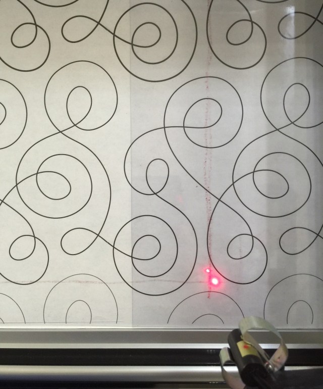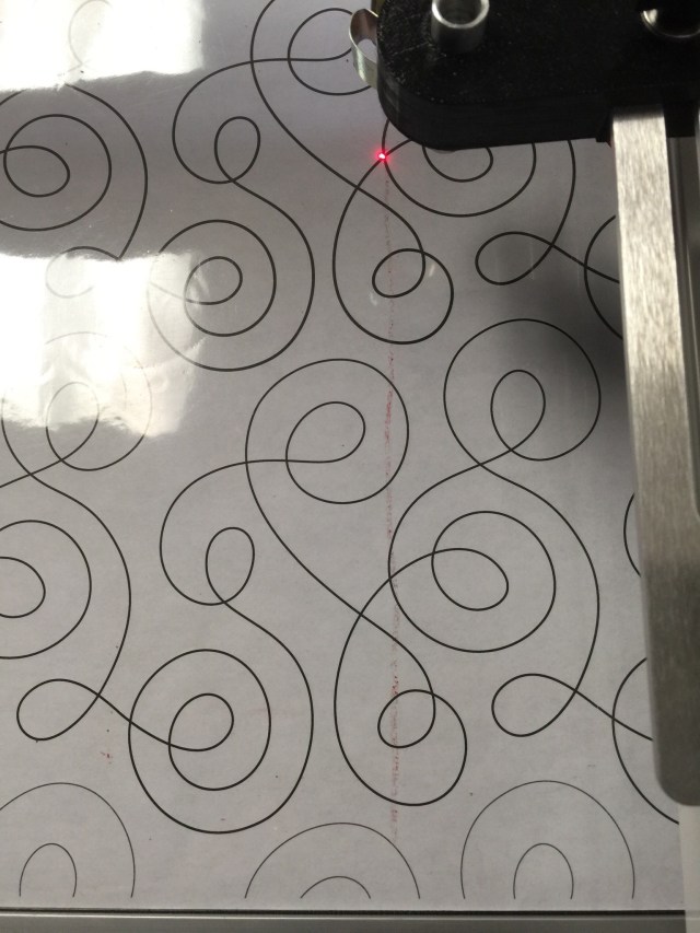 I will continue advancing the quilt until the laser light reaches the top of the “row below” on the pantograph. Now you can see that the partial rows at the top and bottom are for lining up with panto. This keeps all the rows perfectly spaced without any gaps in the quilting across the surface.