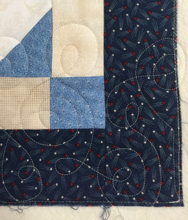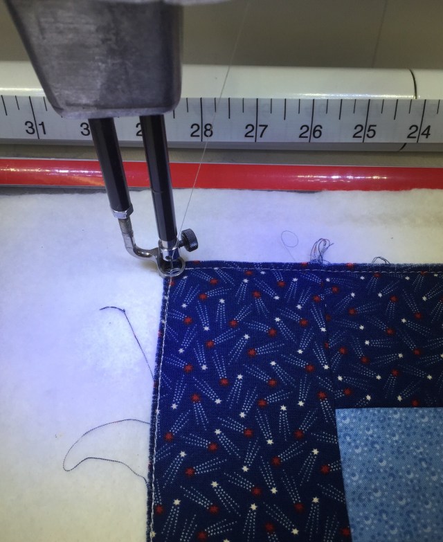 Thanks for sharing – very interesting & I love the crayon! I wondered about advancing the quilt on the frame & keeping the pattern in line. I didn’t realize with needle down, when advancing the quilt, the machine moved too! I noticed stitches along the edge of the quilt top. Do you do that to hold the 3 layers together?