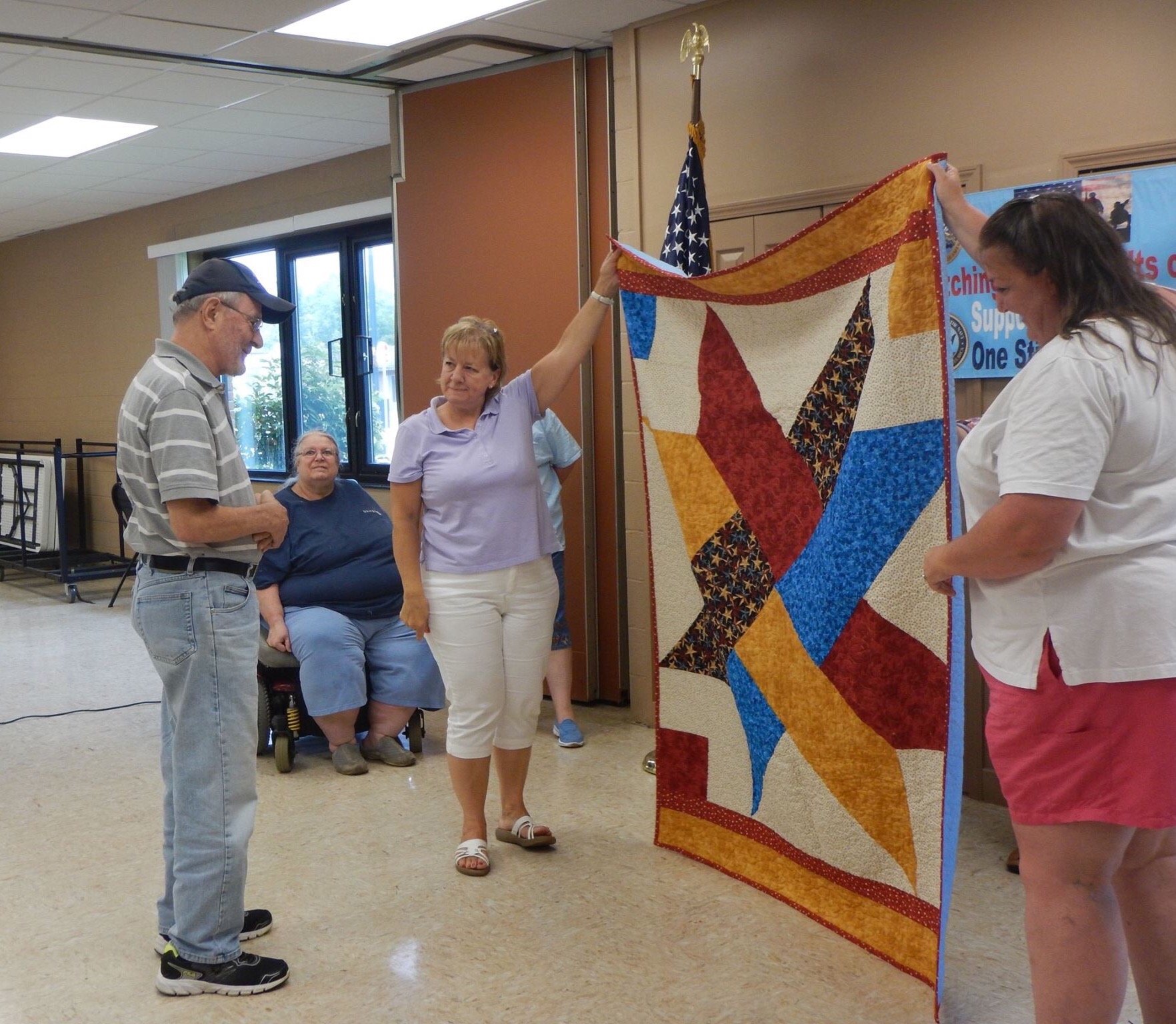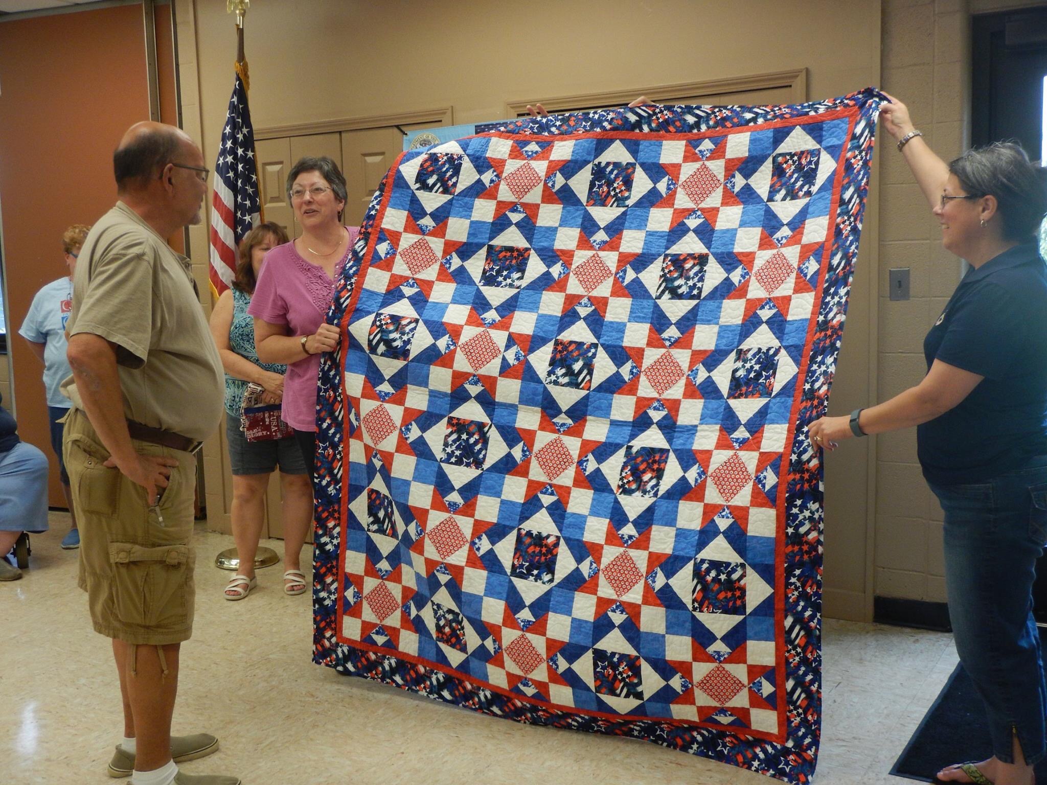 This next quilt was made by Lori. She is over on the left helping to hold up the quilt.