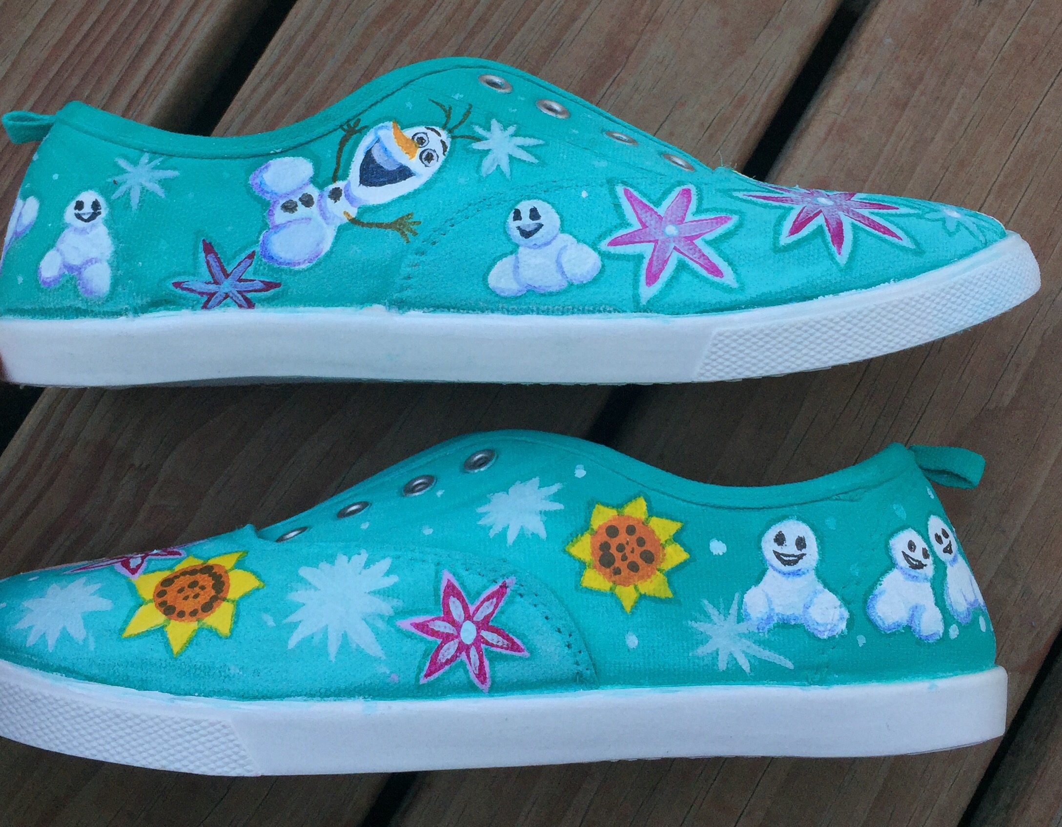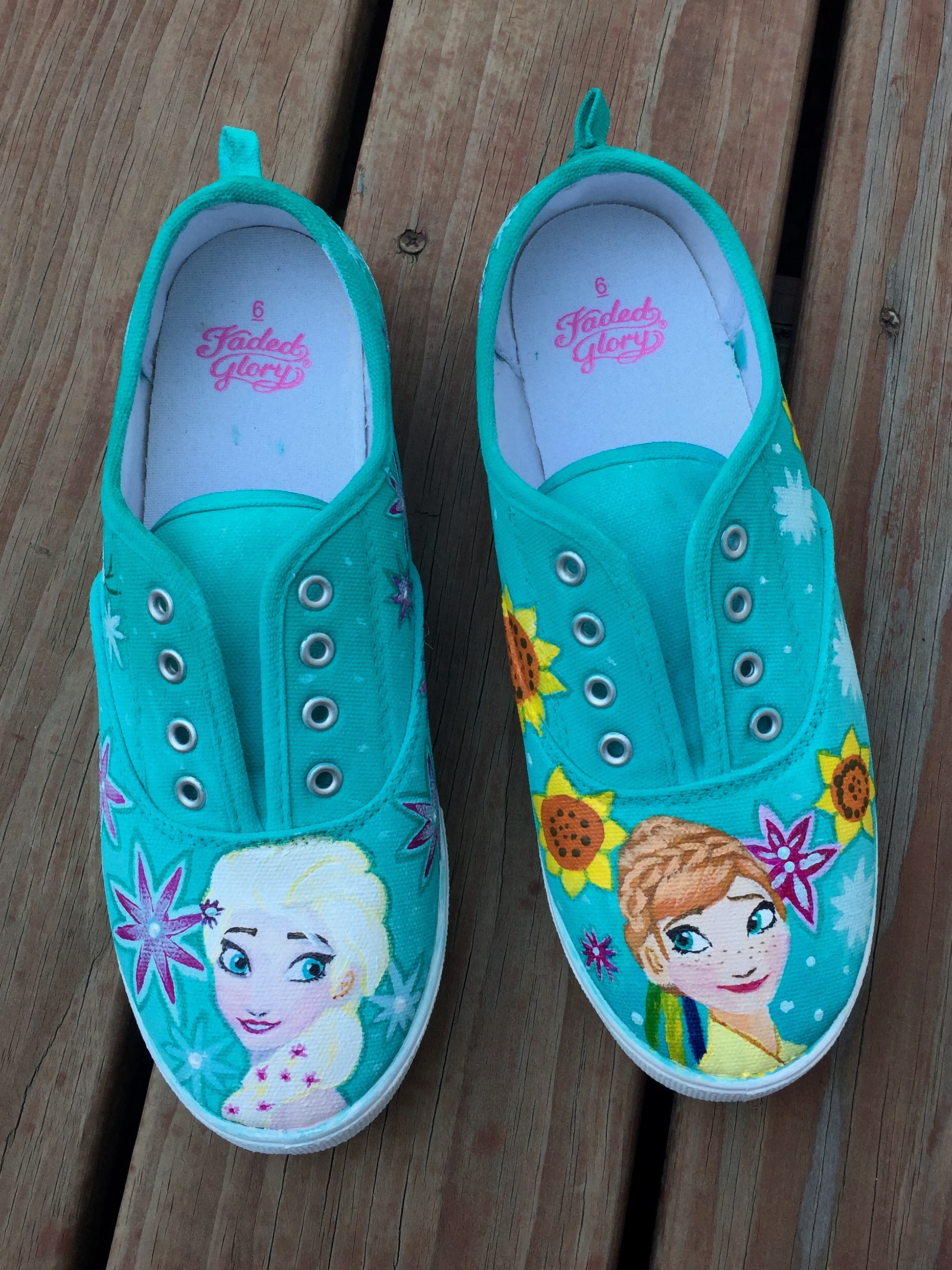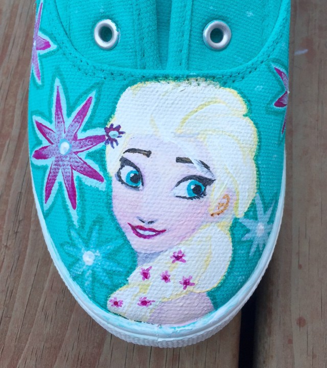 I recently contacted a young friend of mine and asked her if she could paint some shoes with a Frozen theme. They were to be a gift.
