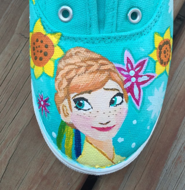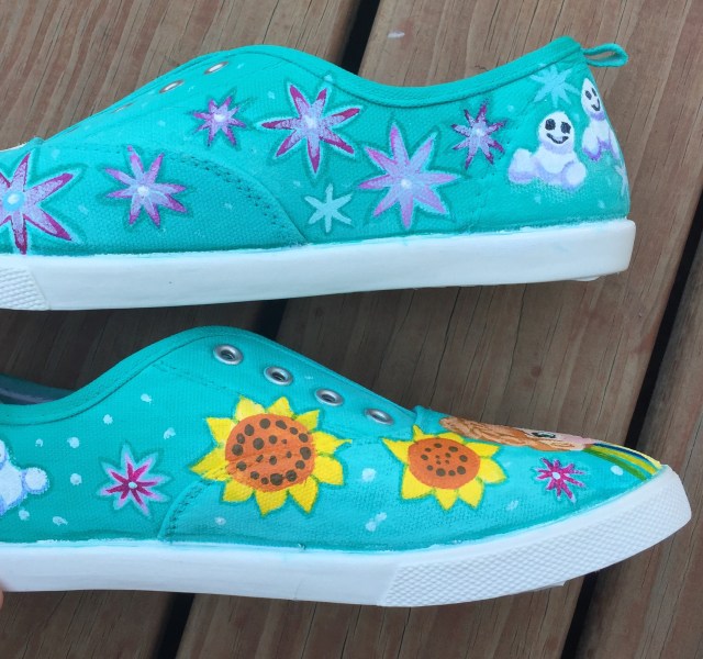 These shoes are just darling! What beautiful artwork. Your little Frozen fan will be the envy of all her friends, for sure, and the artist could be swamped with requests for more shoe art. I’m glad you shared these with us.